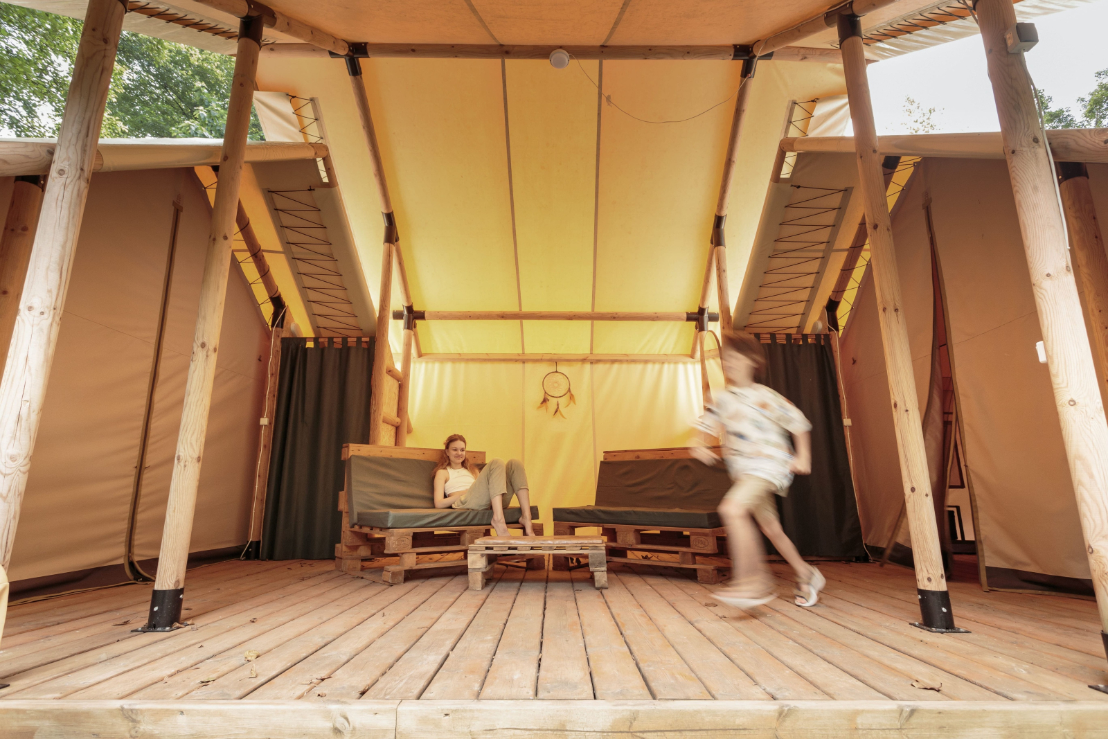 Дети до 6 лет без предоставления дополнительного места размещаются бесплатно. Дети от 7 лет до 12 лет располагаются на основное место или на дополнительное детское при возможности Тент Хауса. Гости старше 12 лет размещаются на основное место или дополнительное взрослое место при возможности Тент Хауса.