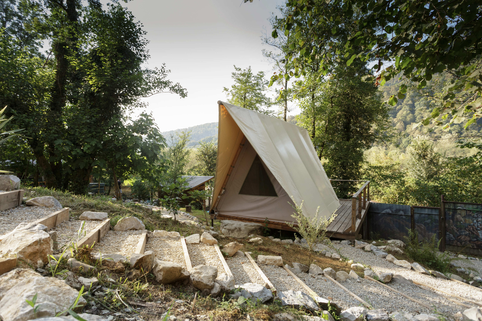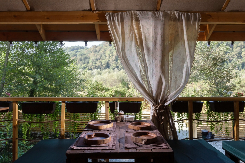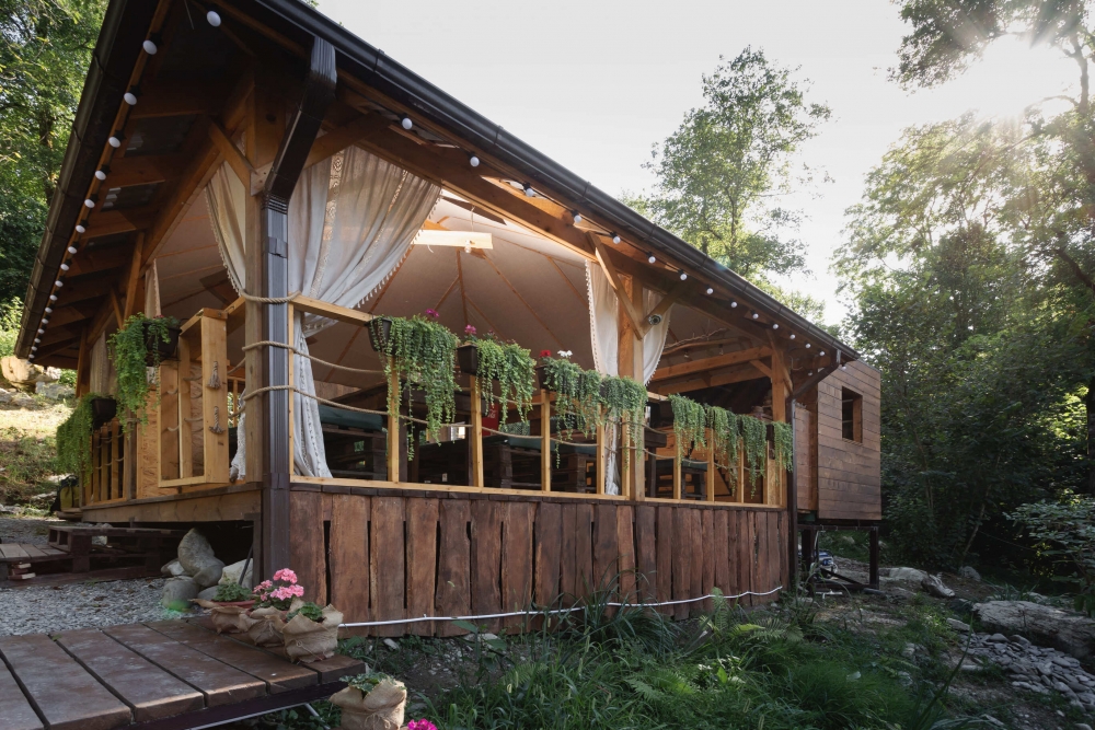5 уникальных домов с авторской мебелью ручной работы, каждый с собственной террасой и панорамным видом на горы.