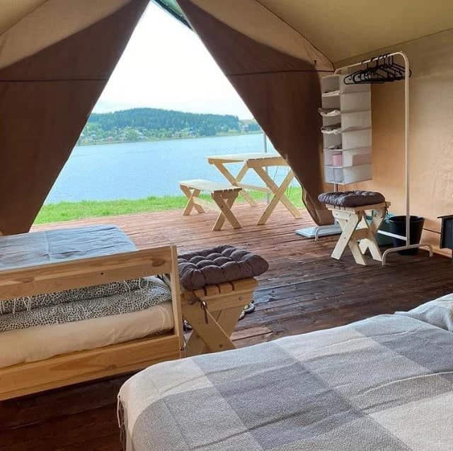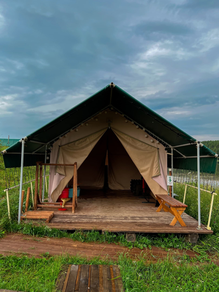 - Возможность размещения в палатке (участок на обработанной от клещей и комаров территории, не более 4-х человек).