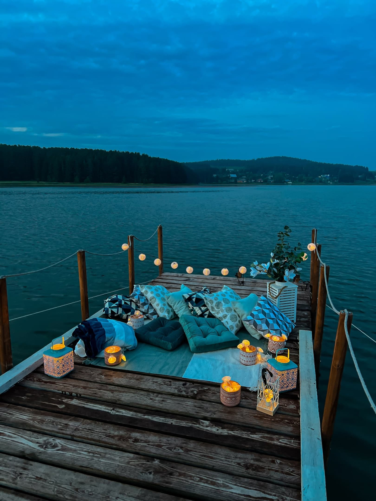 У нас Вы можете устроить романтический вечер на пирсе, среди мягких подушек и при свечах - лучший способ выразить свои эмоции и чувства любимому человеку.