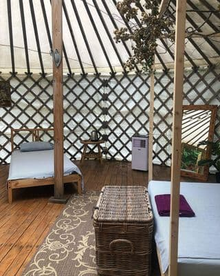 В юрты проведено электричество, установлены 2-спальные кровати. На территории лагеря оборудованы площадки для отдыха. На них установлены качели, столики.