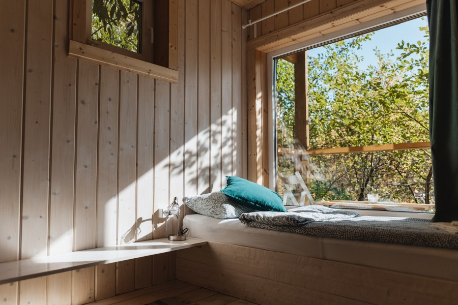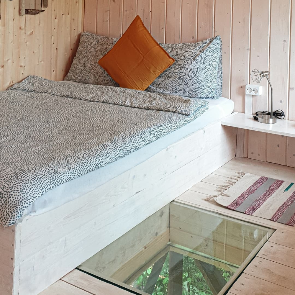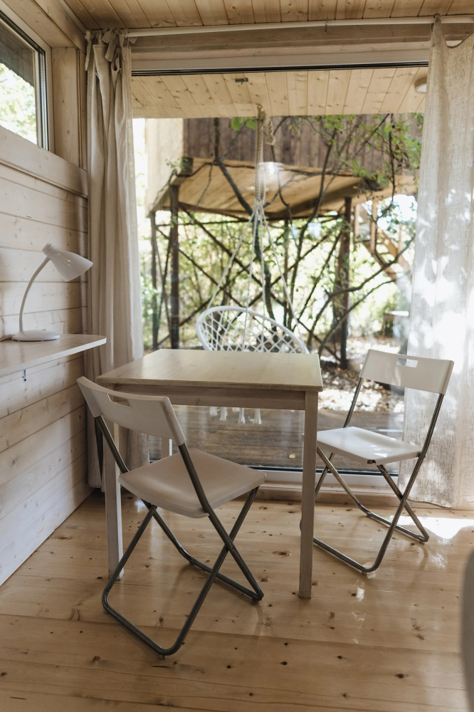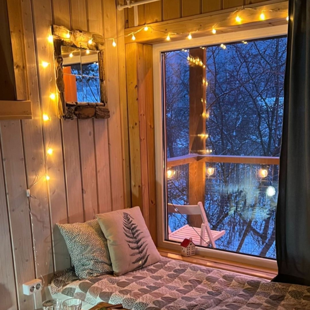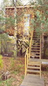 Эти уникальные дома расположены на высоте более 4 метров среди берез, сосен и лесных орехов. Каждый домик оснащен панорамными окнами с видом на сад и уютными террасами, где можно слушать шелест листвы и пение птиц.