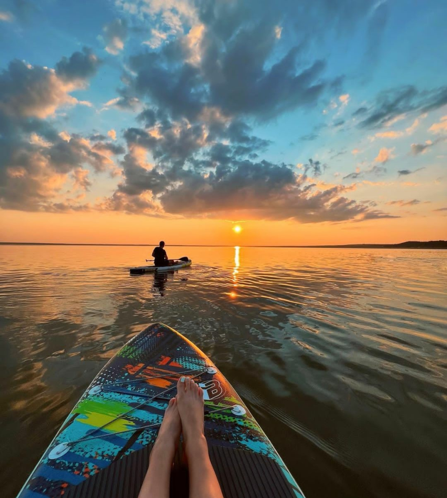 Собственный песчаный пляж на Плещеевом озере, где можно купаться, встречать закаты или отправиться в водное путешествие на сапе.