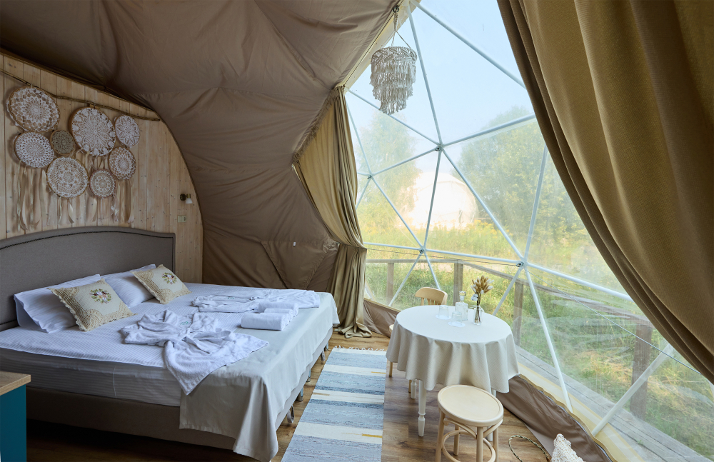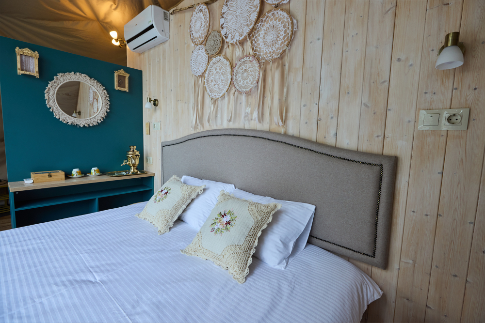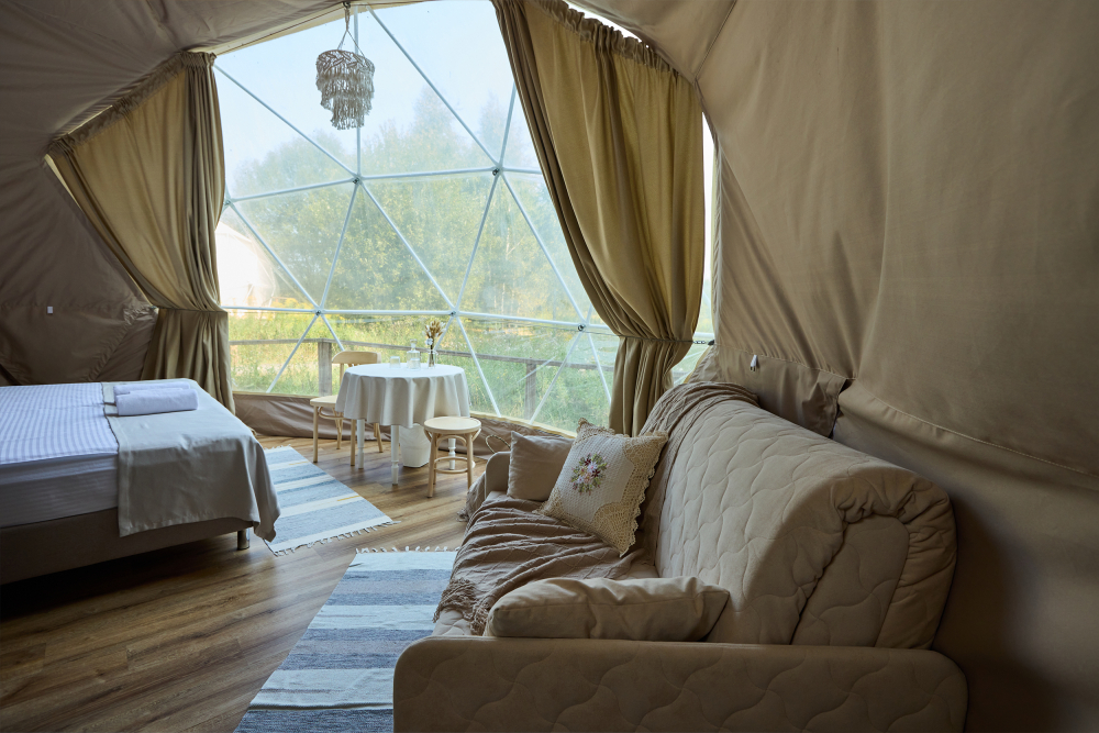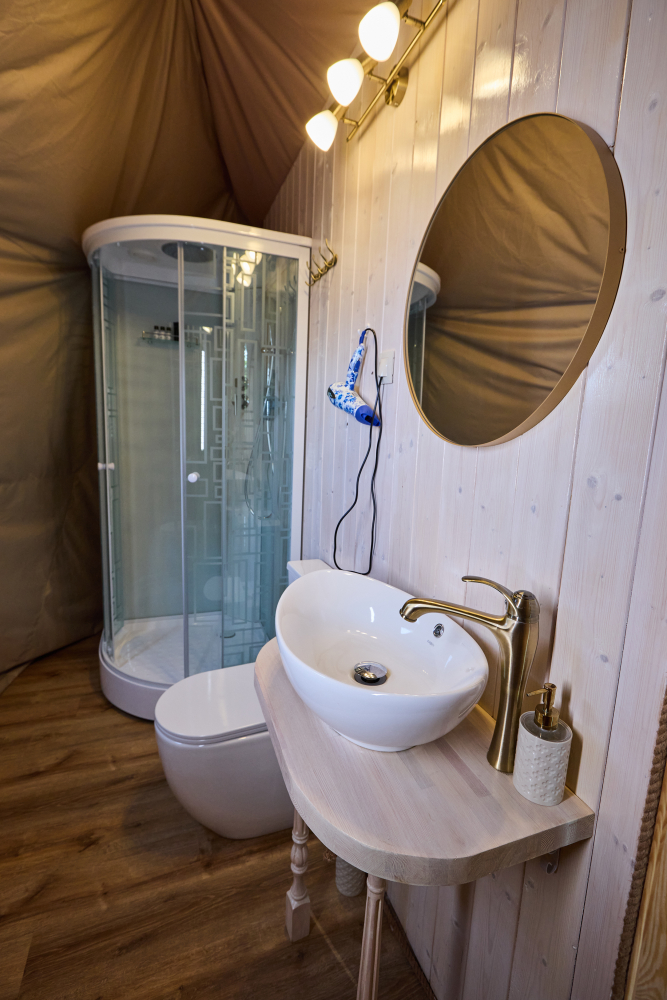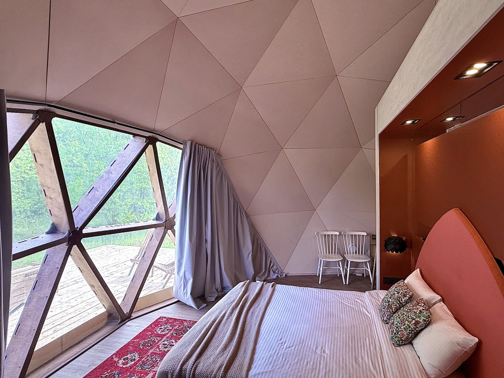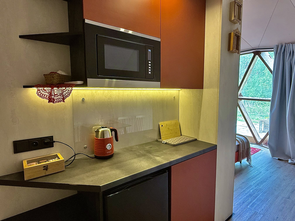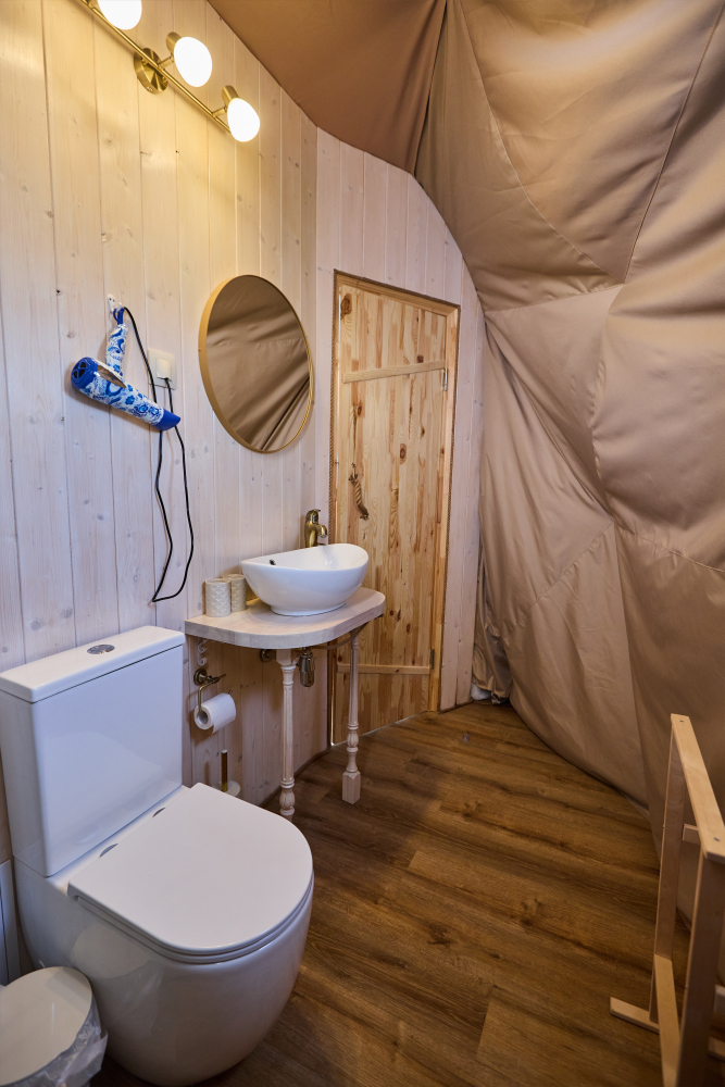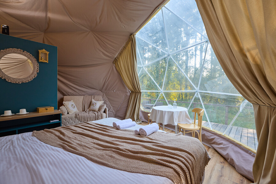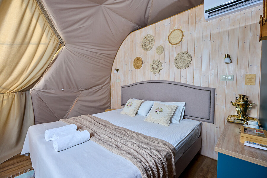 В сферах и домиках комфортная температура, она идеально подходит для проживания взрослых, детей и даже малышей. Нагрев происходит за счет теплого пола, а охлаждает помещение кондиционер, он так же есть в каждом номере. Так что не переживайте, климат и чистый приятный воздух мы обеспечим.