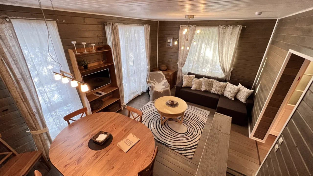 Это отличное место как для уединённого тихого отдыха на природе, так и для любителей активных туров. Размещение в одном из двух отдельных коттеджах в окружении леса позволит отдохнуть от шума города, провести время с семьёй или повеселиться компанией. Проживая в минималистичной тревел-хижине, расположенной на удалении от основного комплекса, можно ощутить себя в центре карельской природы или сконцентрироваться на работе.