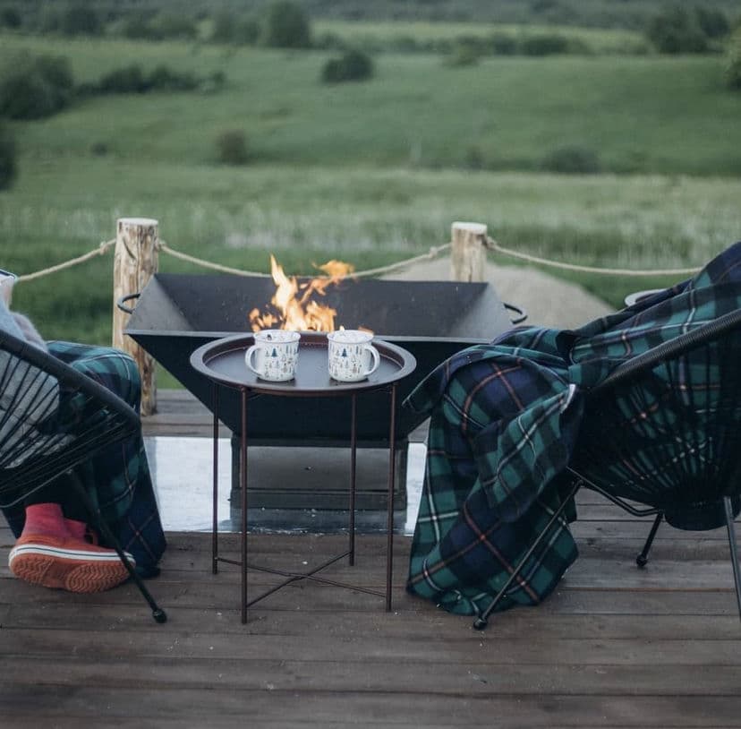 Рядом с каждым шатром мы оборудовали просторную террасу с пуфиками.