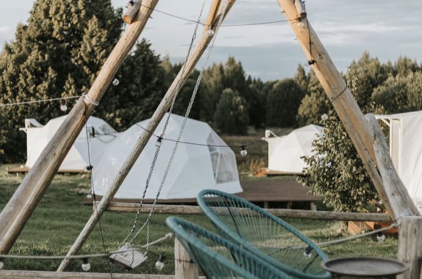 Посреди лесов и полей мы поставили для вас шатры «фуллер дом», разработанные еще в 60х годах для освоения Марса