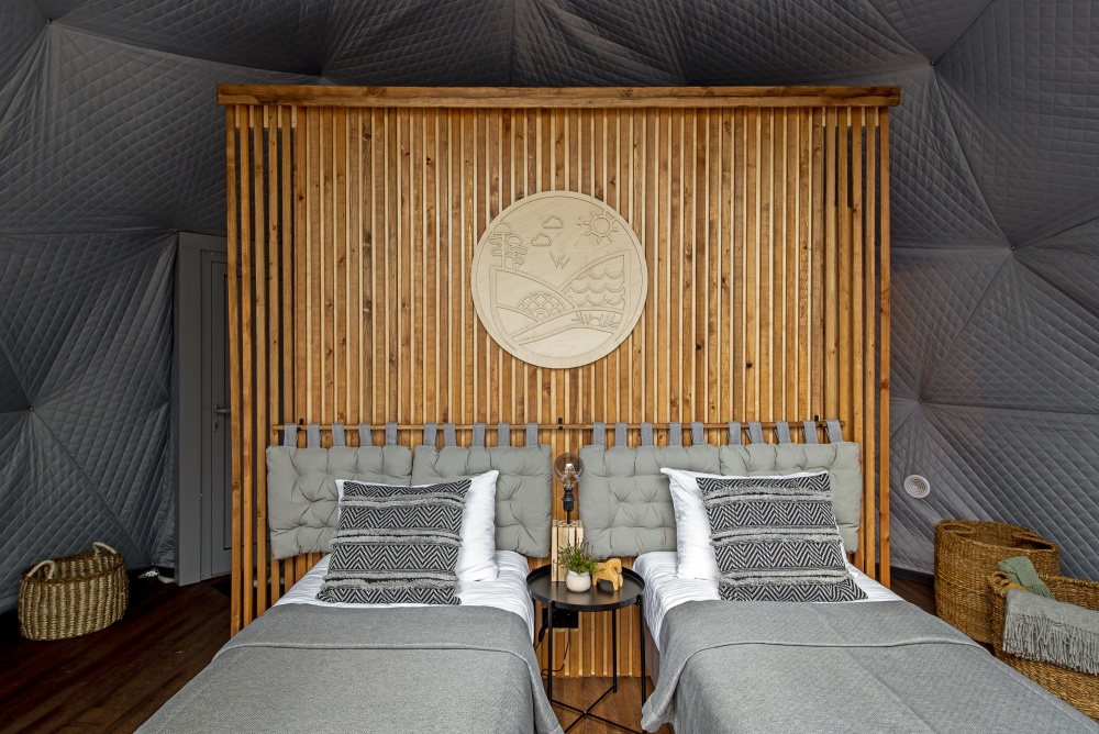 Всего 13 геокуполов, каждый рассчитан на 2-3 человека.