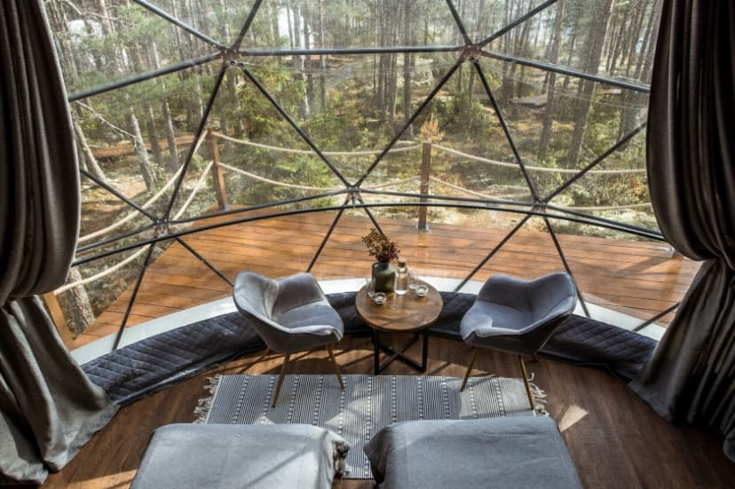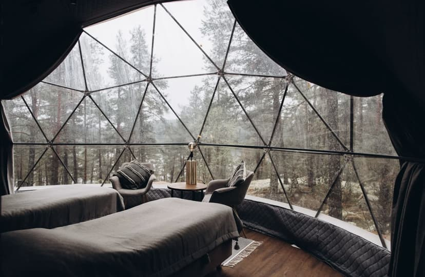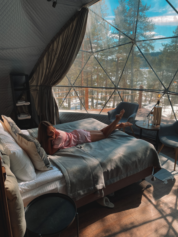 Панорамный купол (78 кв.м) с видом на Ладожское озеро.