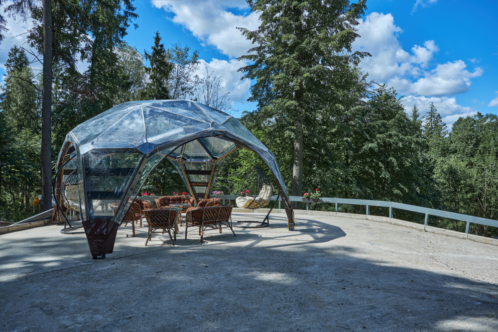 Вы сможете отлично провести время в открытом большом подогреваемом бассейне. Теплыми вечерами можно отдыхать на своей собственной террасе в Тент-Хаусе, либо на общей релакс-зоне с костром и гамаками.
