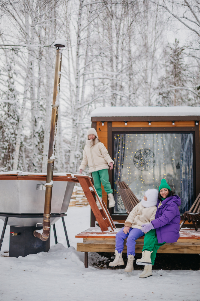 В зимнее время гостей ждут снежный городок, горки, также каток, елка, лыжня.