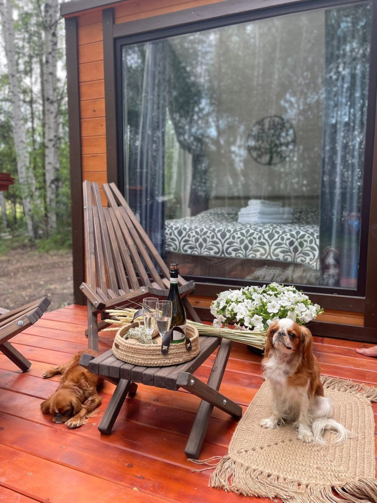 При заселении в домик с животными (до 5кг), взимается дополнительная оплата в размере 1 000 рублей, на весь срок проживания. Размещение с кошками недопустимо.
