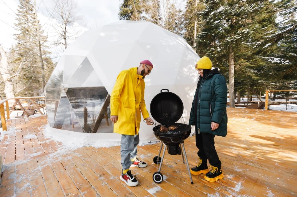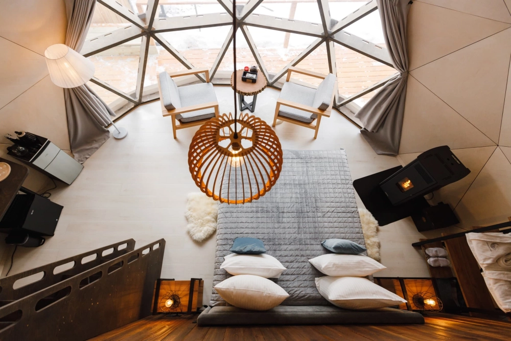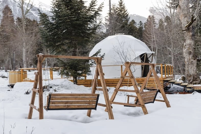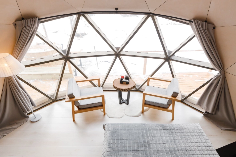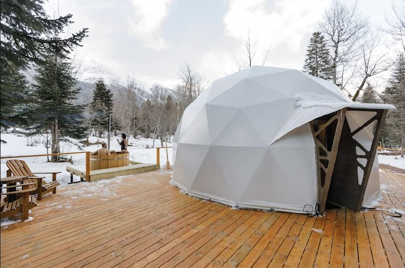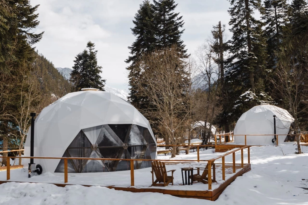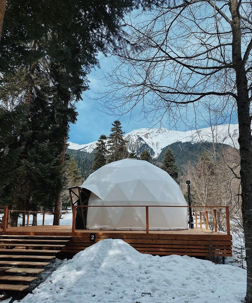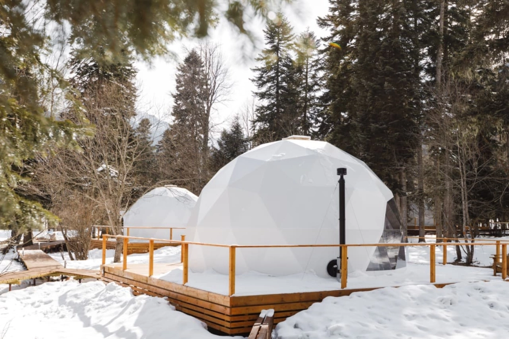 Благодаря уникальной конструкции домов-куполов, можно наслаждаться видом на статные горы и пихтовый лес, при этом оставаться скрытыми от глаз всего мира.