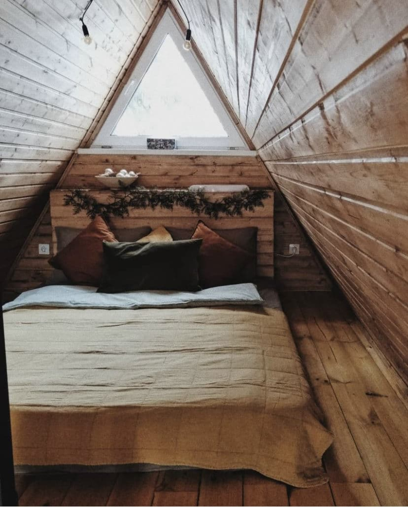 Общая площадь дома 36 квадратных метров по первому этажу плюс небольшой лофт, где расположена спальня.