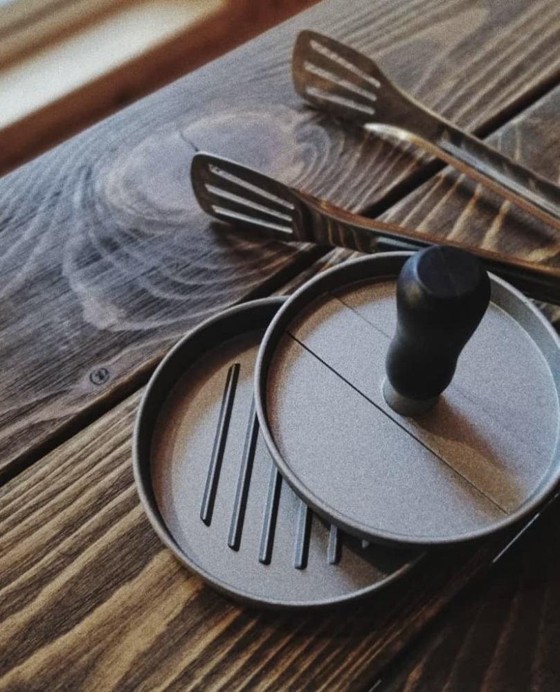В зоне барбекю есть все принадлежности — угли, розжиг, спички, апохало, решетка для приготовления еды, шампуры, щипцы и формирователь бургеров.