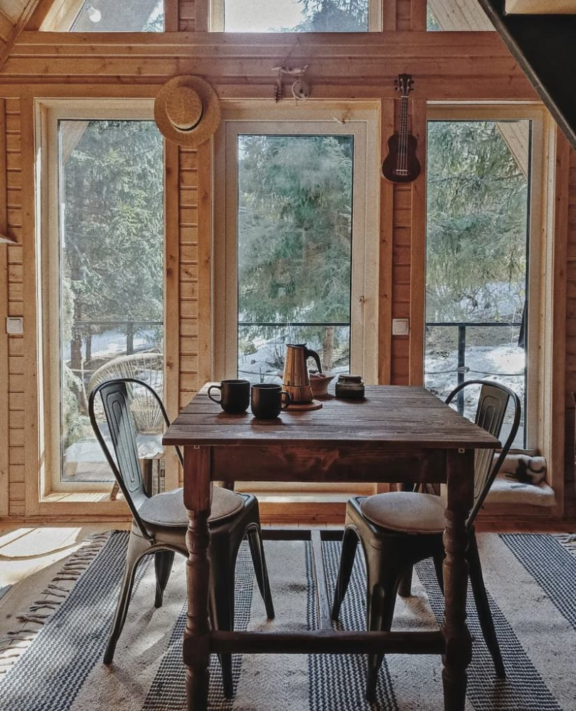 Наш дом расположился на лоне природы, в тишине леса с вековыми елями. Здесь вы не услышите шума дорог. Здесь царит тишина, природа и гармония, которые охватывают вас со всех сторон и погружают в атмосферу максимального расслабления и спокойствия… Здесь можно дышать, быть собой, слушать свои мысли или вовсе ни о чем не думать… Мы очень тщательно выбирали локацию для постройки этого дома. И создали уникальное место для перезагрузки ума и тела.