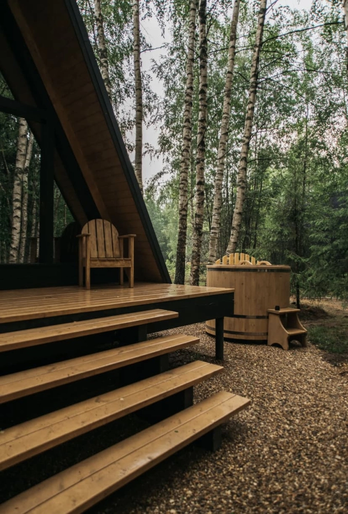 Необыкновенно уютные треугольные домики с панорамными окнами прямо на вековой лес для тех, кто любит проводить время на природе с комфортом.
