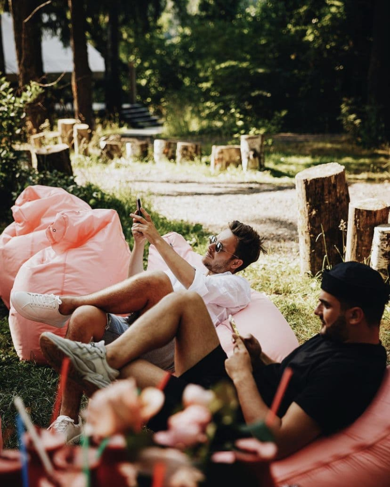 Для тех кто хочет просто релакса оборудована пляжная зона с лежаками, зонтами и удобным спуском для купания. А утром там же проводим йогу.