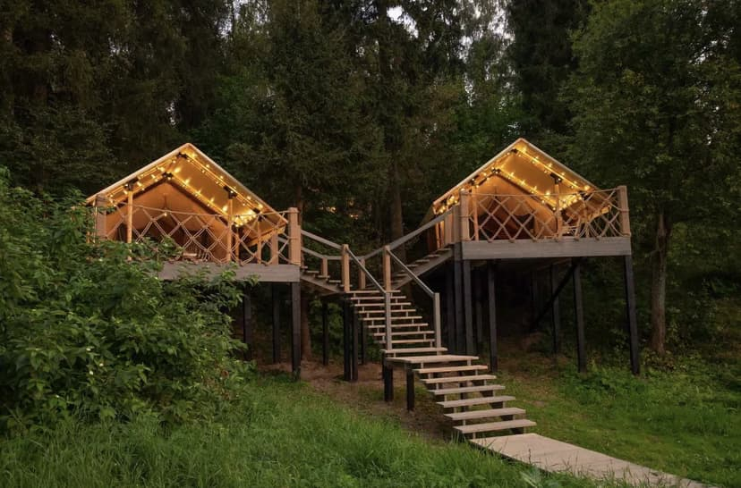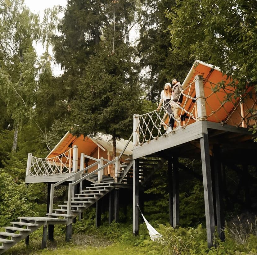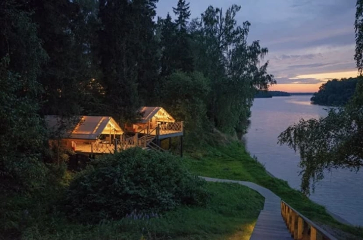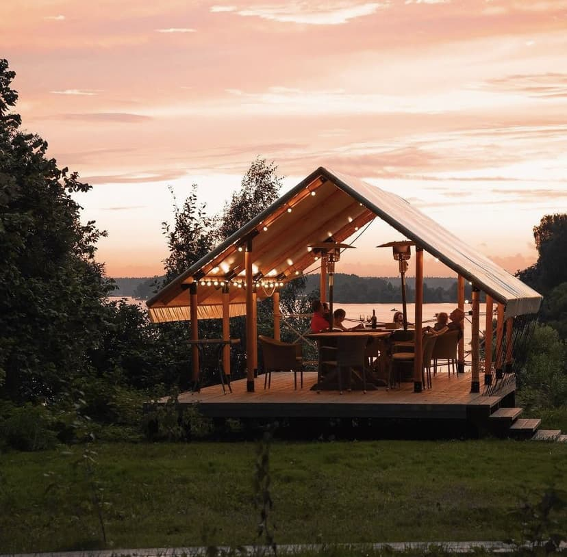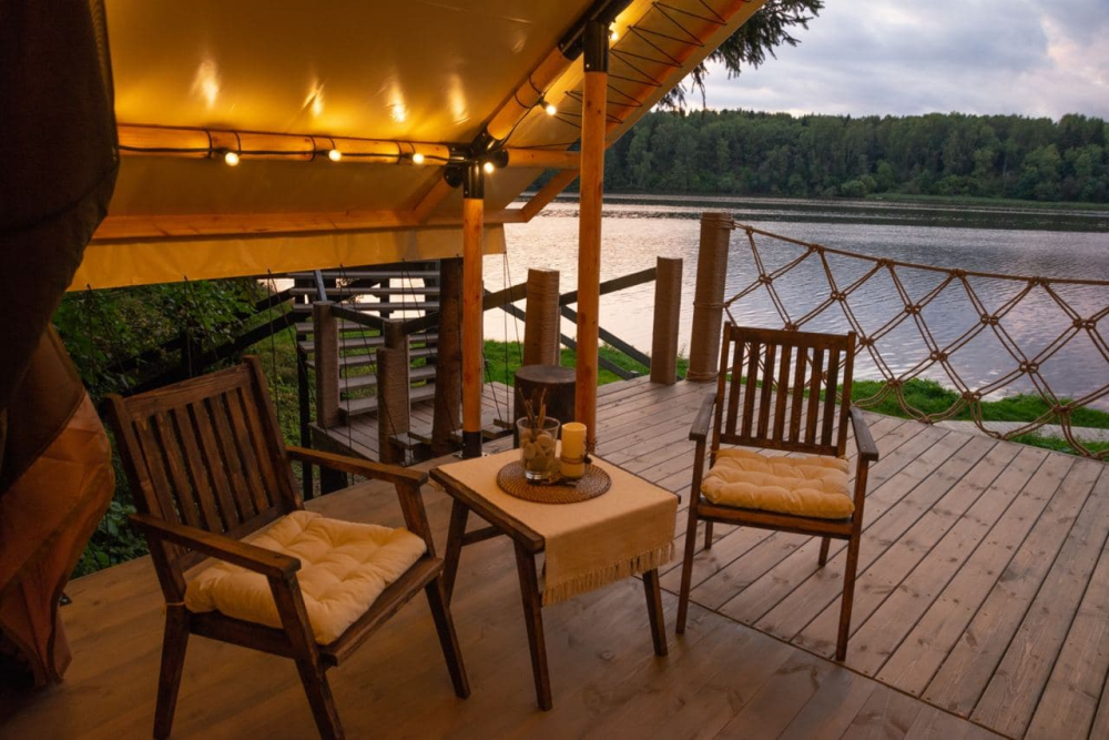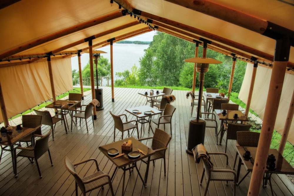 Наши дома сделаны в виде Сафари-тентов. Это большие, крепкие и тёплые палатки, в которых есть все для максимального комфорта: стильная и уютная обстановка, дизайнерский интерьер и отопление. Прекрасный вид на воду в каждом номере! Можно любоваться сидя на террасе в кресле или гамаке или прямо из кровати.