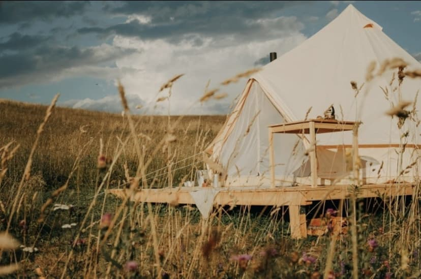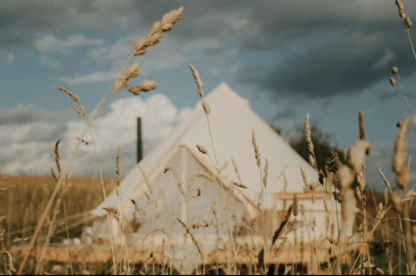 Главная наша особенность - это простор и единение с природой. Всего 7 больших, комфортных, уютных шатров на 37 гектарах поля с ароматным разнотравьем, а вокруг тишина, спокойствие и дикая природа. Поможем быстро и приятно восстановить свои силы, помечтать и зарядится на будущие достижения.