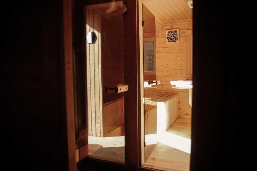 Горячая купель фурако на террасе дома доступна для спа-сеансов по цене 5600 рублей за растопку. Спа-сеанс возможен не позднее 19:30, продолжительность одного сеанса составляет 2–4 часа, вместимость — от 2 до 4 человек.