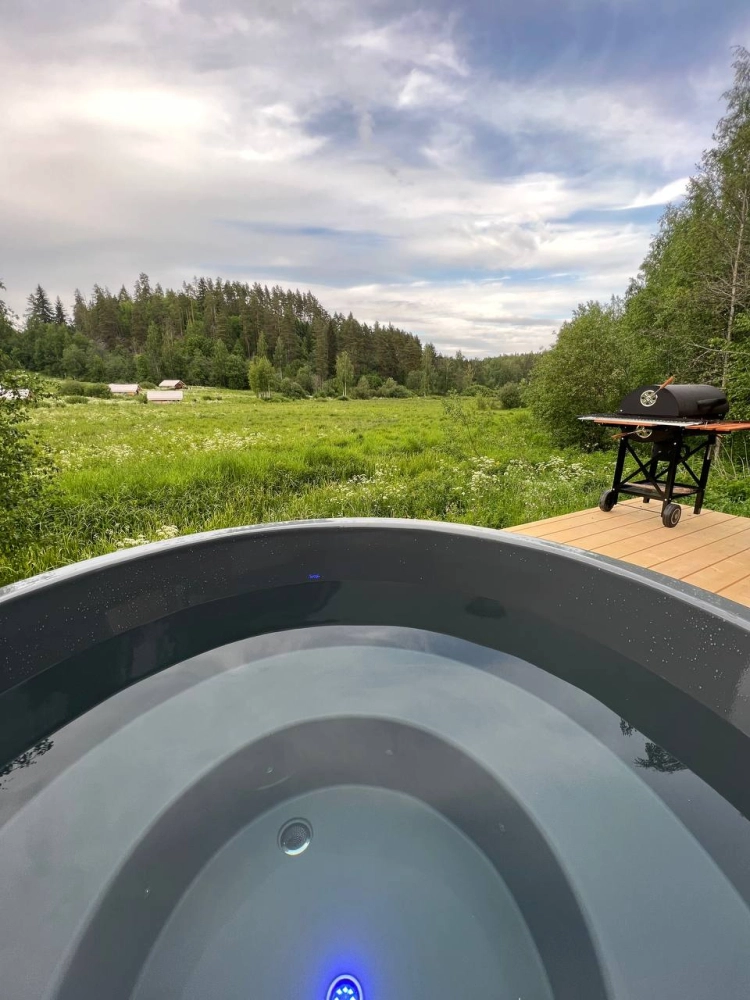 Горячий чан есть около домиков Барнхаус "Фьорд".