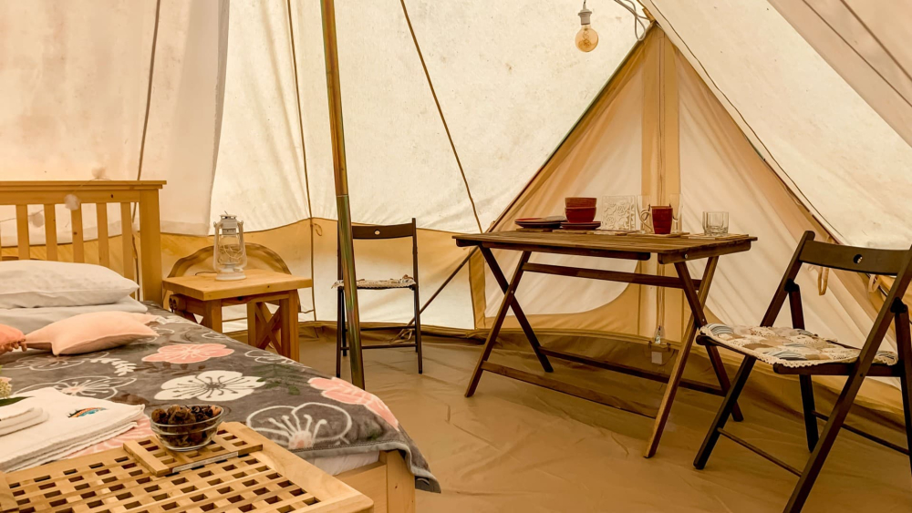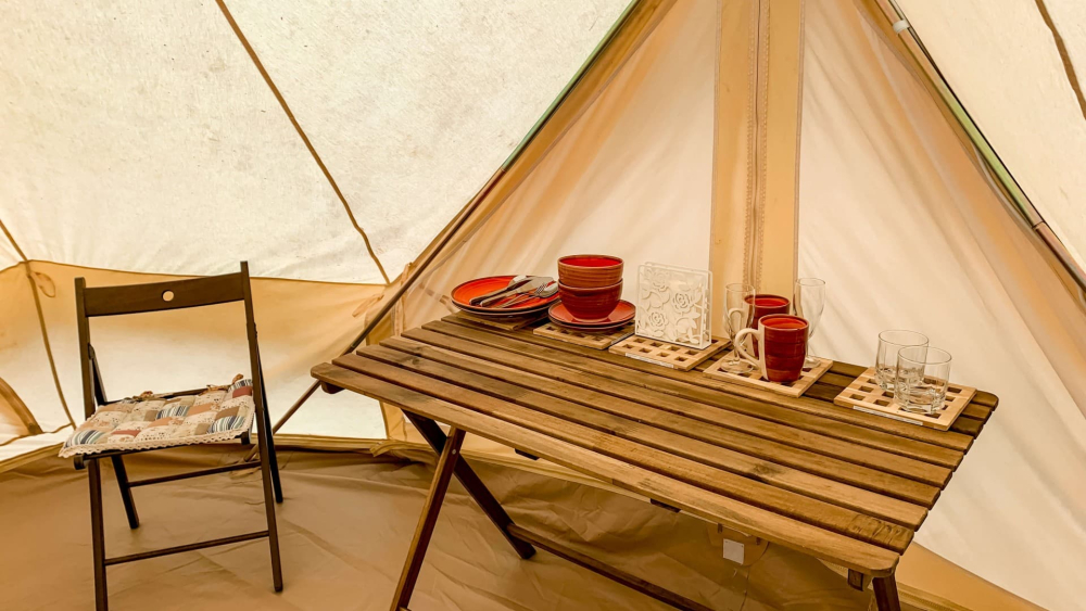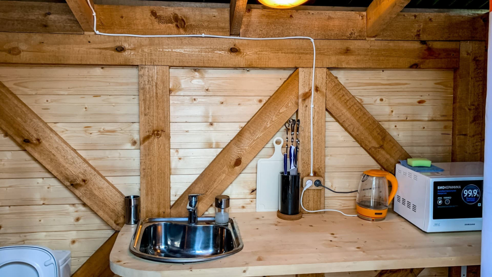 Снаружи шатра расположилась открытая терраса с удобными стульями, столом и зоной для BBQ с мангалом и решеткой для приготовления ароматных блюд на гриле. Вблизи шатра расположились плетеные гамаки, где будет так приятно поваляться с книгой или просто помечтать, укутавшись в мягкий плед и любуясь ночным звездным небом.