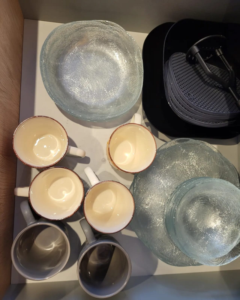 * Кухня-столовая со всем необходимым: посуда, техника: ТВ, wi-fi, большой холодильник с морозилкой, посудомоечная машина и электрическая плита.