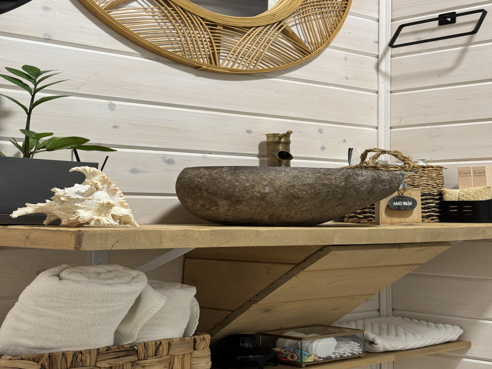 В чане одновременно могут париться до 6 человек. В центре установлен столик для напитков, закусок или кальяна.