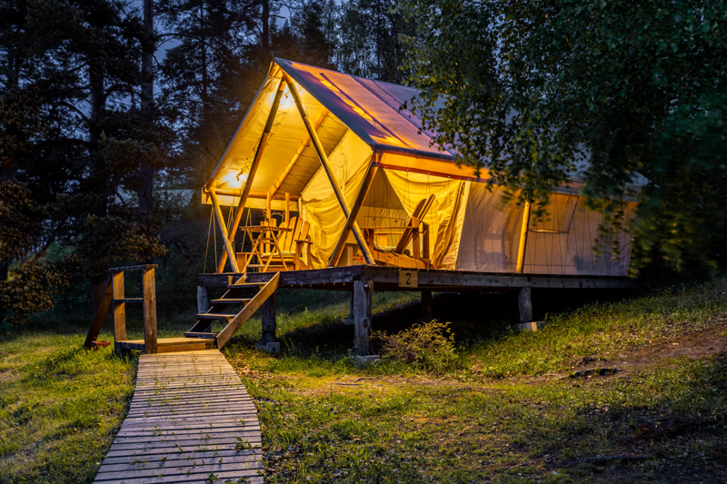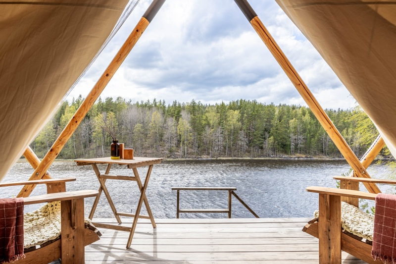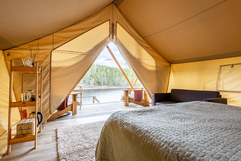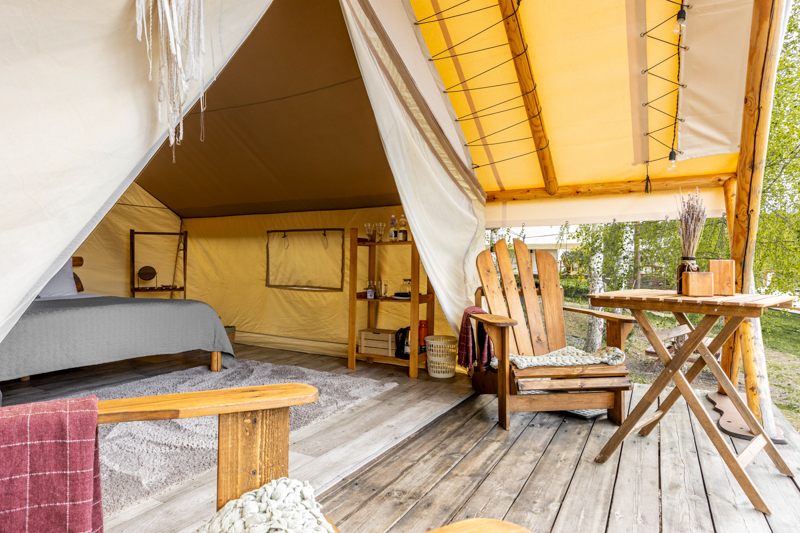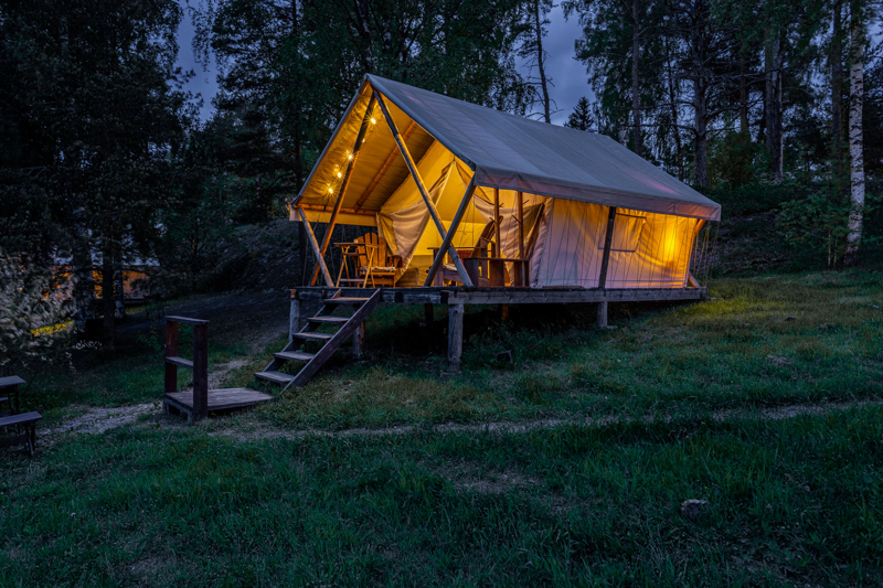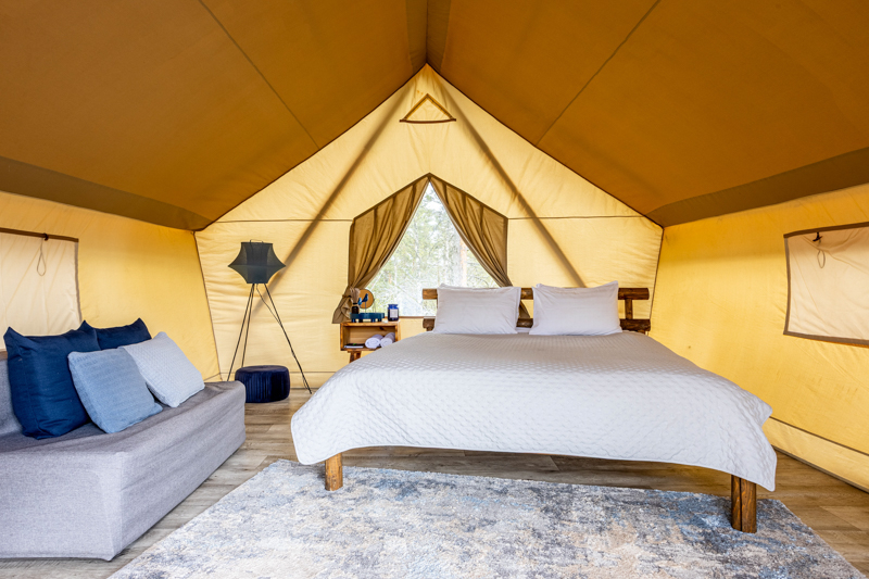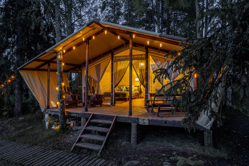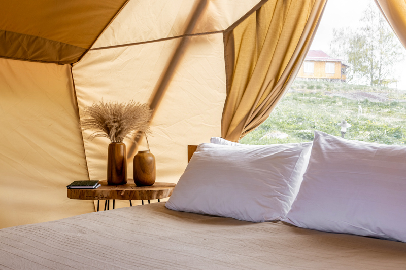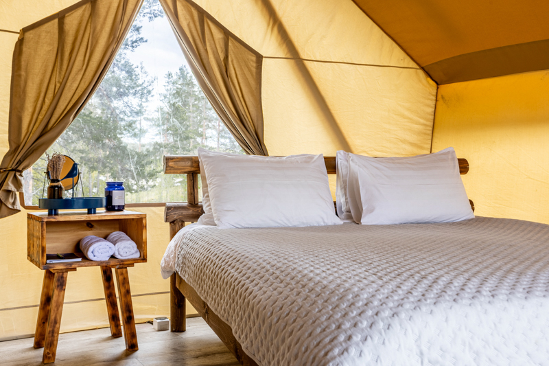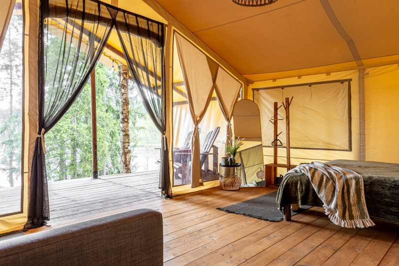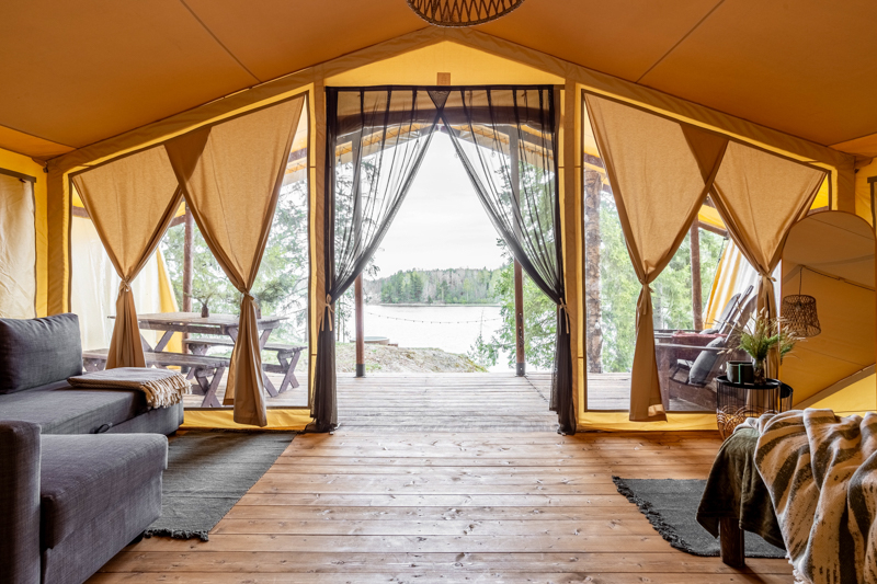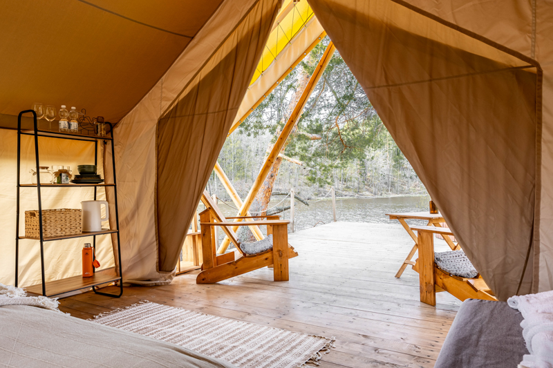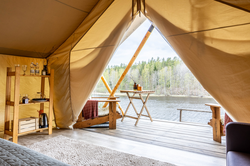 Стандарт без купели: уютные шатры с необходимыми удобствами для отдыха на природе с видом на Ладожское озеро.