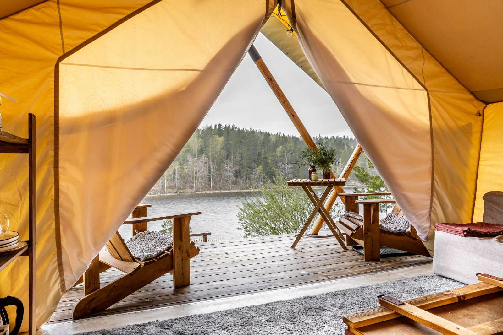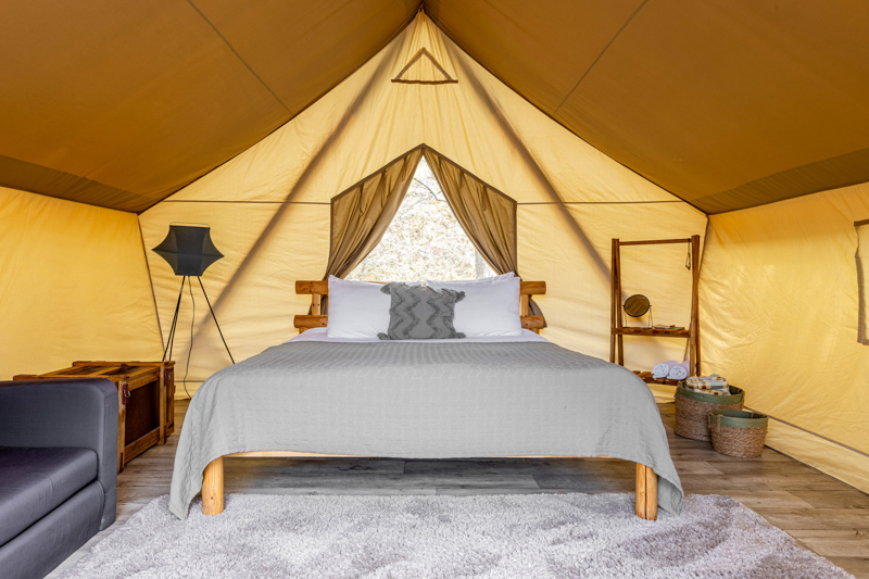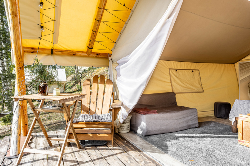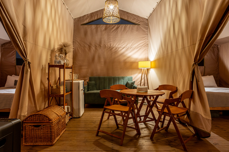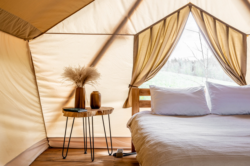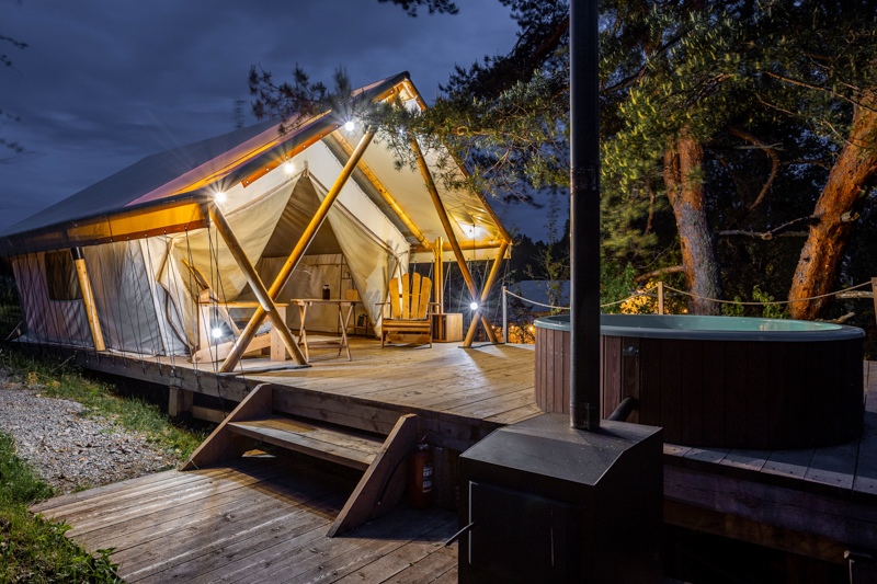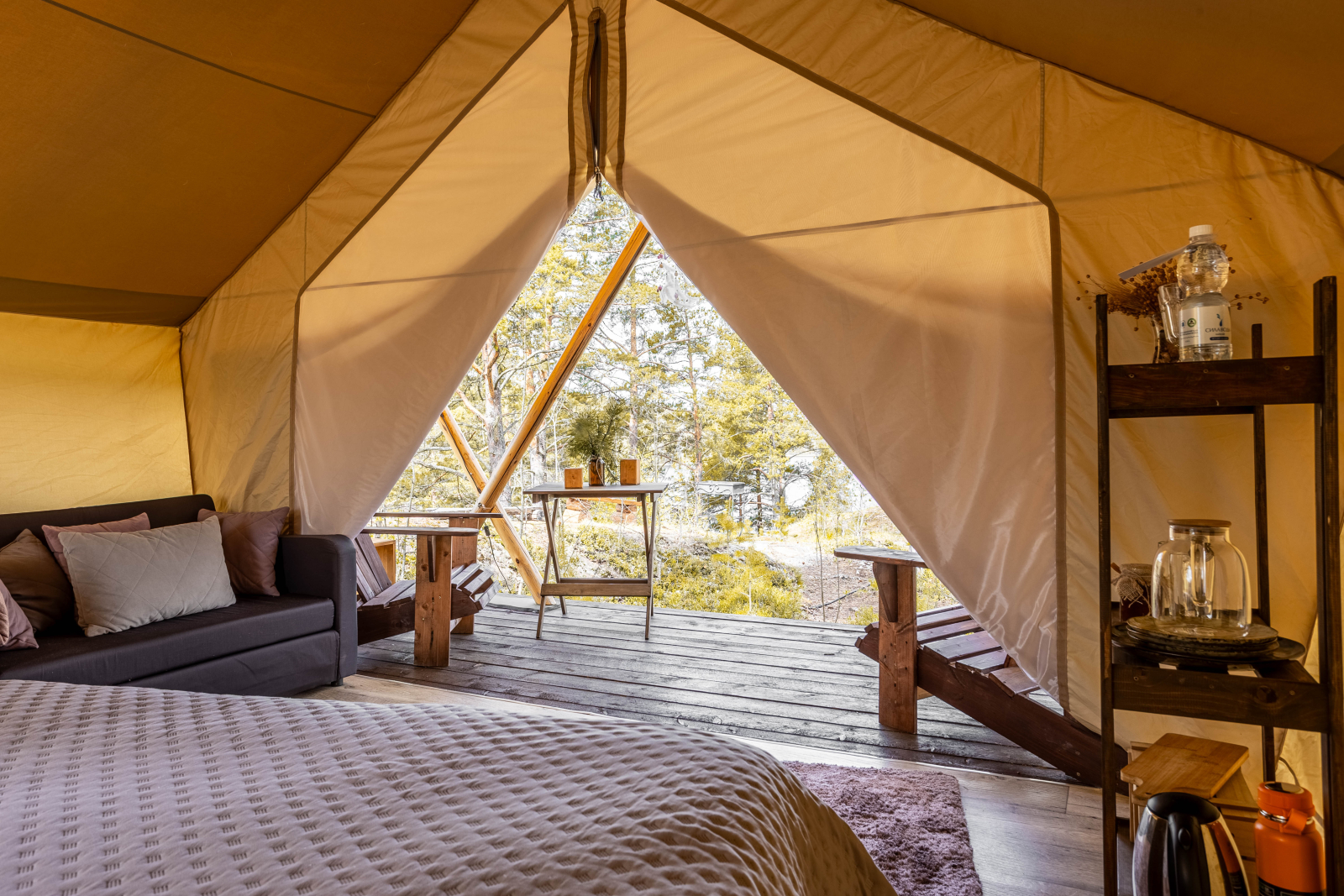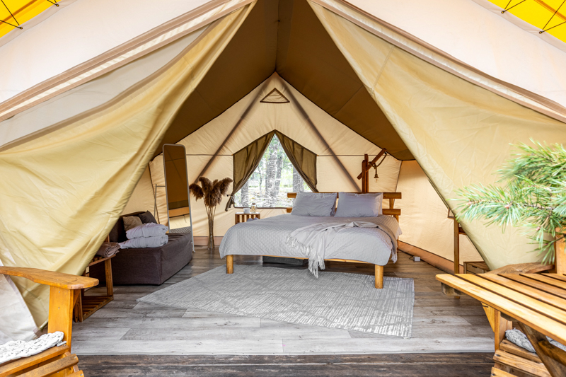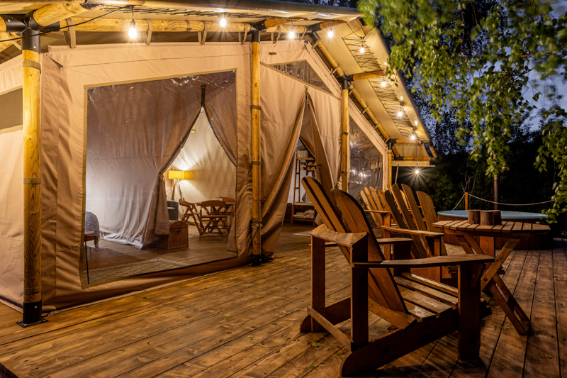 Стандарт без купели: уютные шатры с необходимыми удобствами для отдыха на природе с видом на Ладожское озеро.