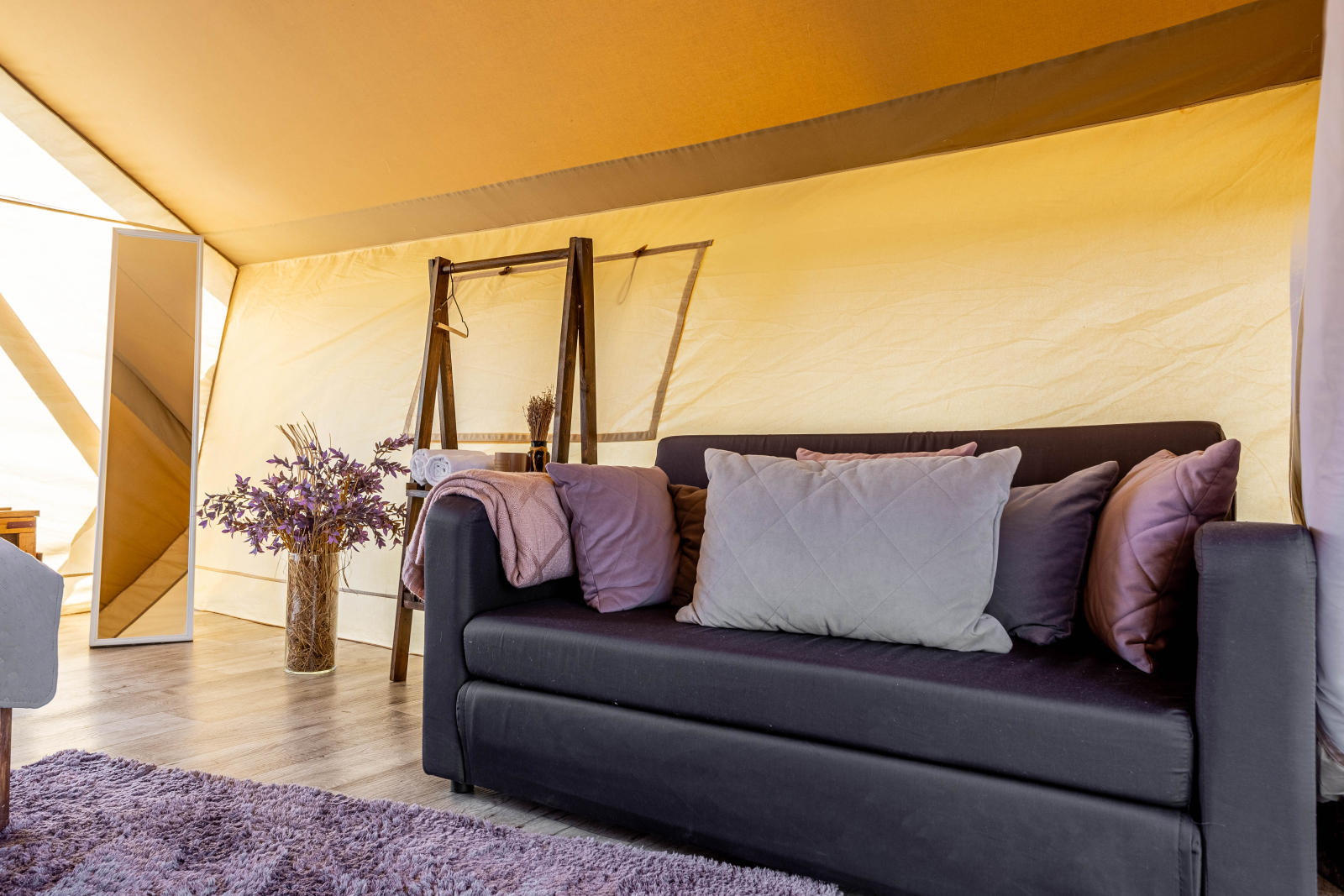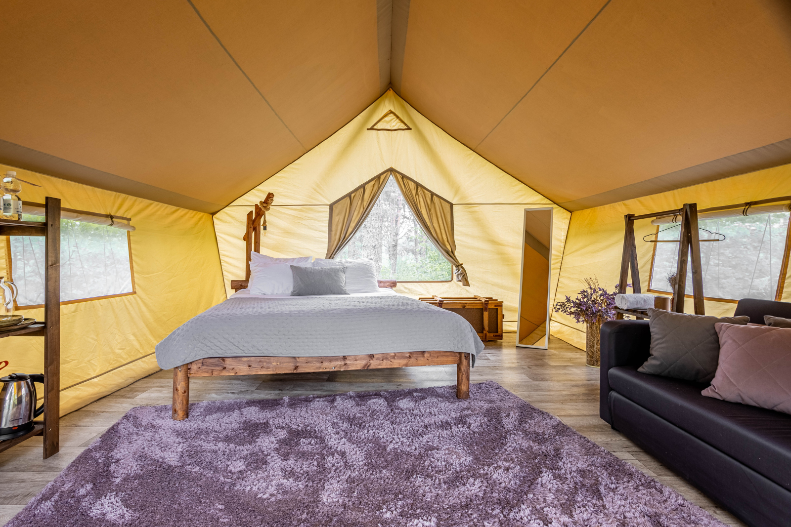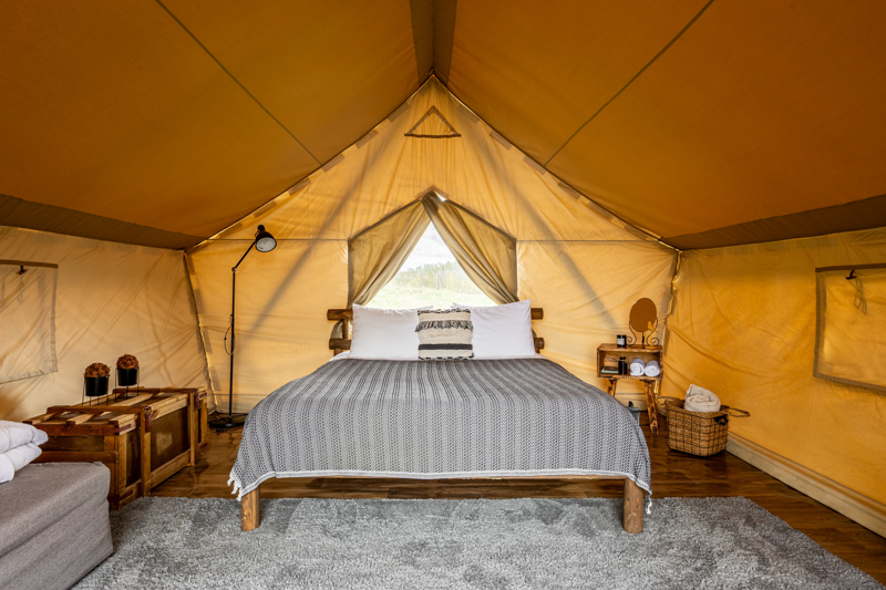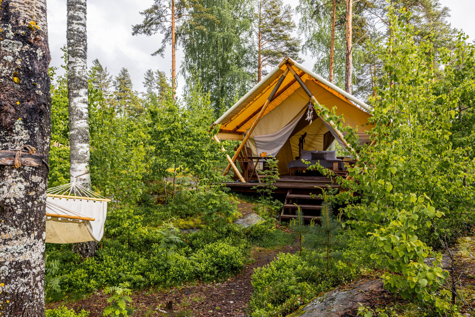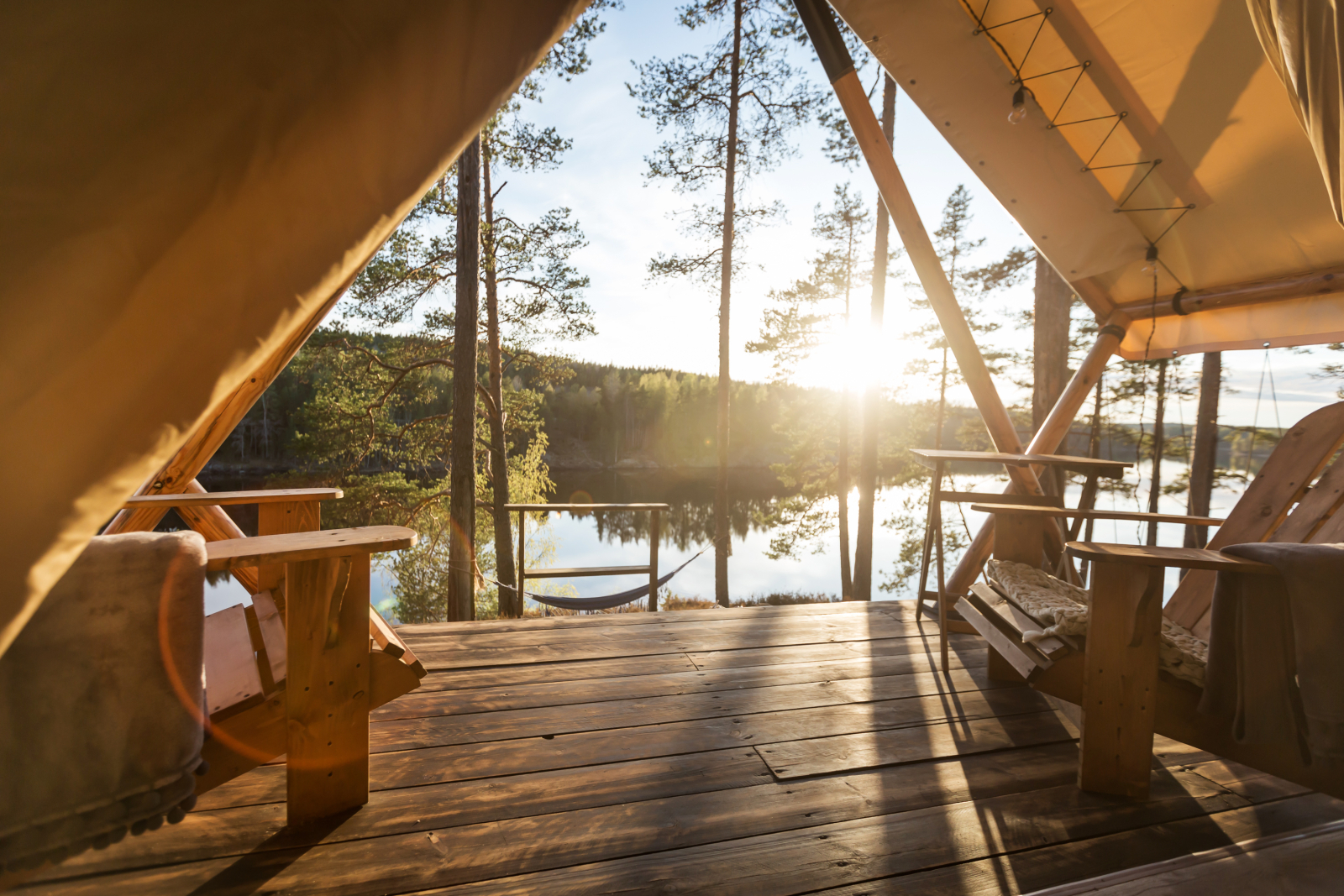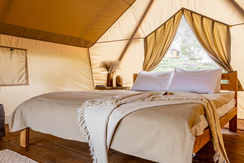 Стандарт без купели: уютные шатры с необходимыми удобствами для отдыха на природе с видом на Ладожское озеро.