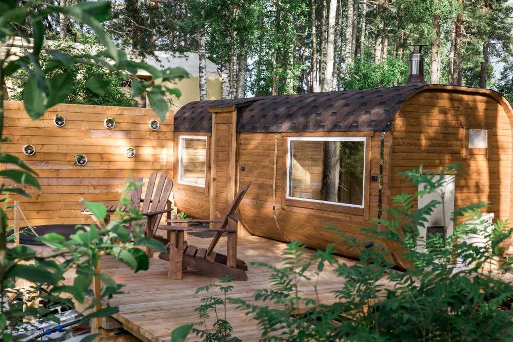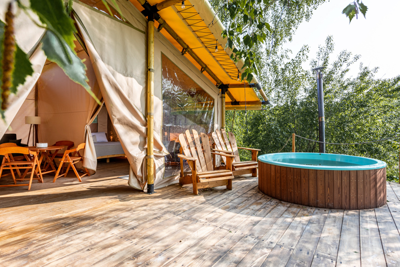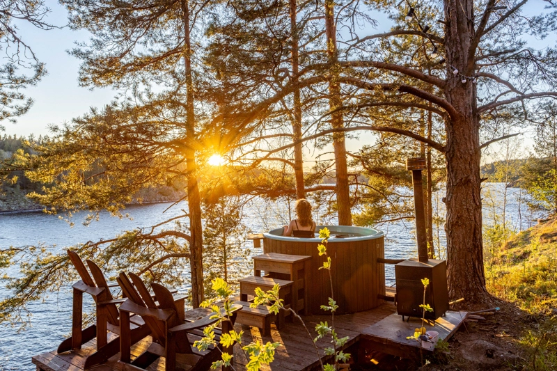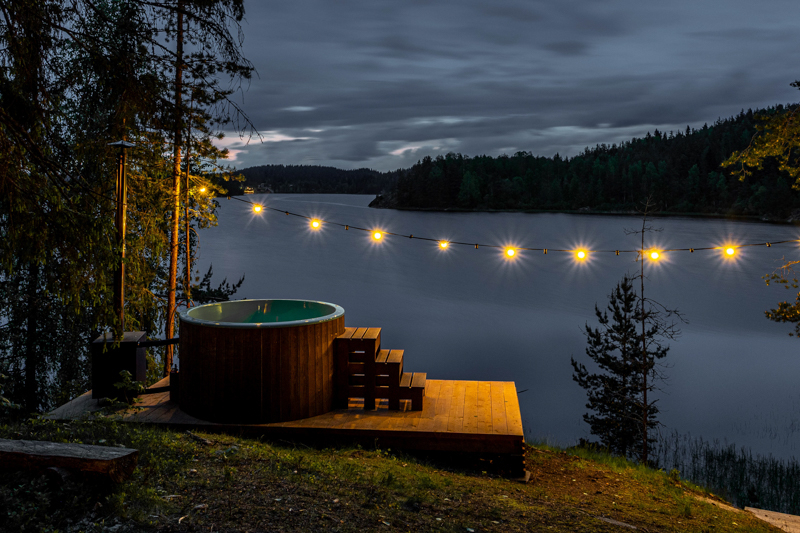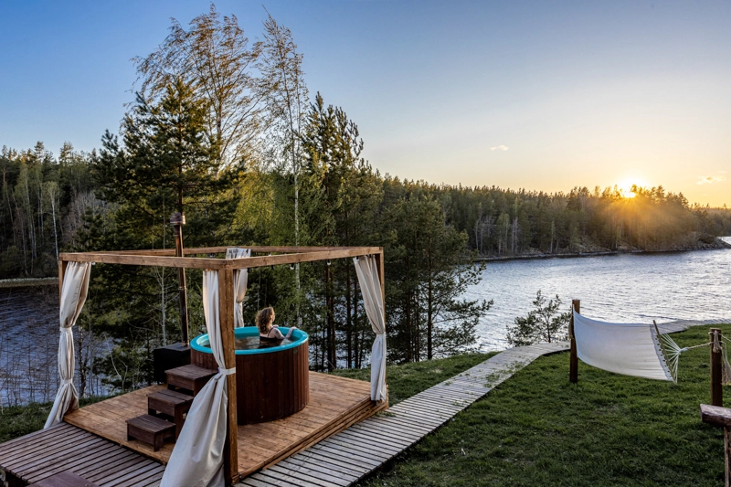 Стандарт с купелью: шатры с горячими купелями и живописным видом на Ладожские шхеры для уединенного отдыха.