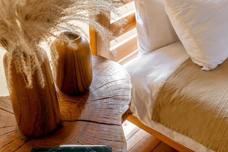 Двуспальная кровать, мягкие полотенца, терраса с видом, гардеробная зона, мангальная зона, розетки, освещение и завтраки из фермерских продуктов.