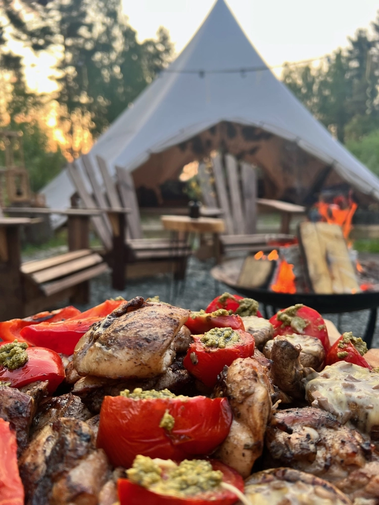 На территории гости могут почувствовать себя шеф-поварами: у каждого шатра оборудована индивидуальная мангальная зона с удобным мангалом, бесплатными шампурами и решеткой, а уголь и розжиг можно привезти с собой или приобрести на месте.