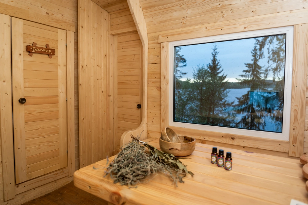 Панорамная баня на первой линии Ладожских шхер — это идеальное место для восстановления сил и наслаждения природой. Сеанс длится 2 часа и стоит 5500 рублей. Здесь можно согреться в парной с ароматами трав, окунуться в освежающую купель, а также насладиться чаем ручной сборки и вареньем из карельских лесов. Для гостей доступна услуга парения: опытный парильщик проведет сеанс с использованием березовых, дубовых или травяных веников, что способствует расслаблению, улучшению кровообращения и оздоровлению. Этот отдых сочетает в себе комфорт, традиции и красоту природы.