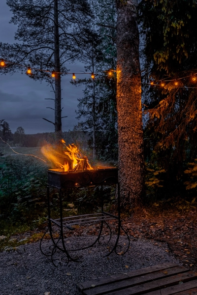 На территории предусмотрена уютная костровая зона, где гости могут насладиться теплом огня, приготовить еду на углях и провести время в атмосфере единения с природой.
