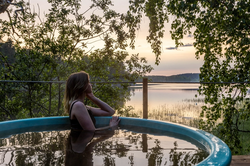 Горячая купель, расположенная на скале в акватории Ладожских озер, доступна для сеанса продолжительностью 2 часа по цене 5000 рублей. Это уникальное место для расслабления, где можно наслаждаться чистым лесным воздухом и звуками природы. За дополнительную плату в воду добавляются фрукты или травы, чтобы усилить эффект удовольствия: фруктовая купель с ароматом цитрусовых и ягод благотворно влияет на кожу, а травяная купель с настоями целебных трав помогает снять стресс и улучшить самочувствие. Этот опыт сочетает в себе эстетику и оздоровительные процедуры в окружении природной красоты Карелии.