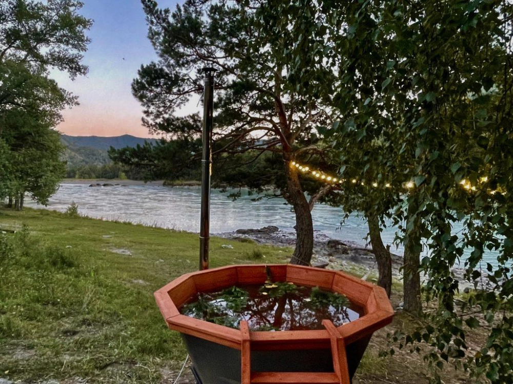 Расположен в живописном месте на берегу реки Катунь, в Чемальском районе Республики Алтай. Здесь вас окружат дикая природа, звуки реки и свежий воздух. Это место идеально подходит для отдыха вдали от цивилизации.