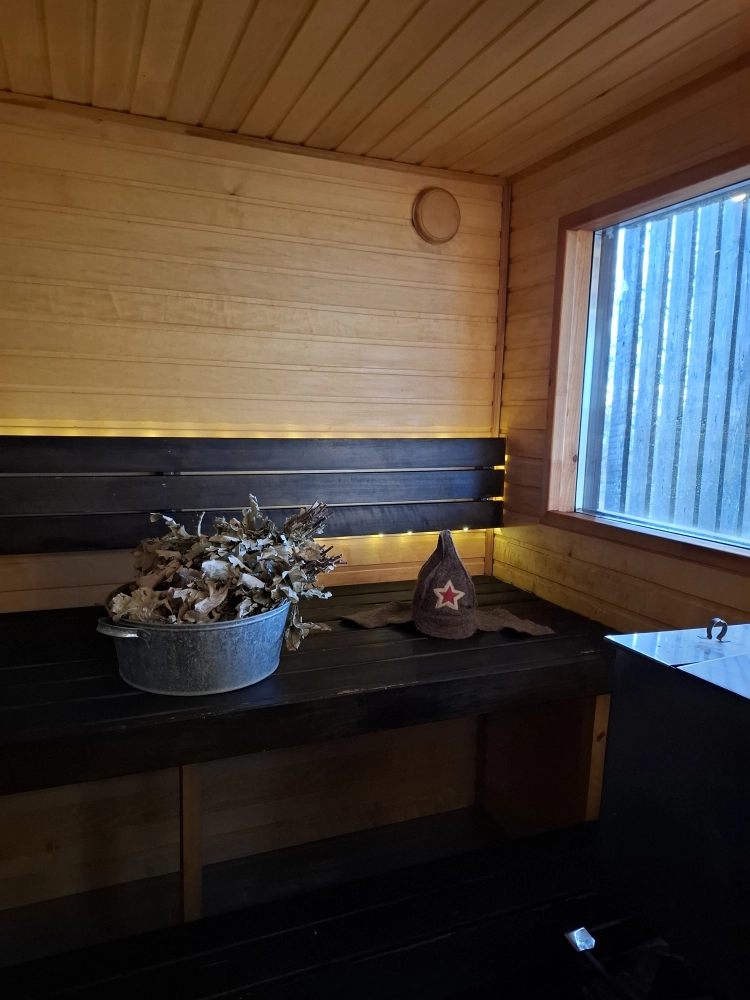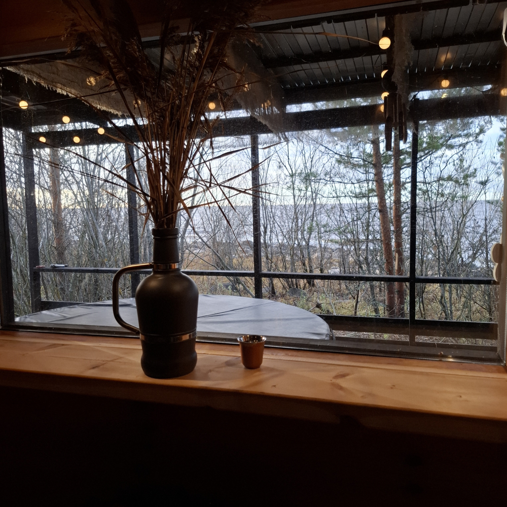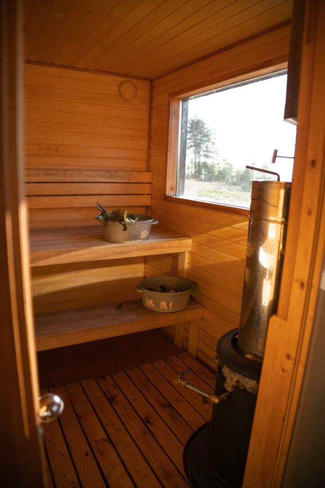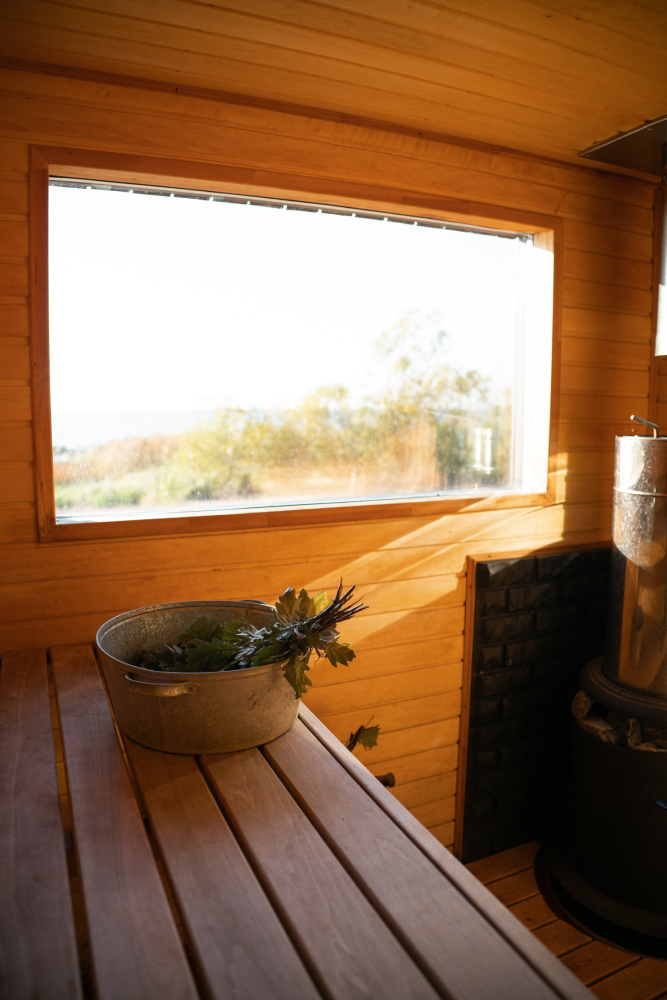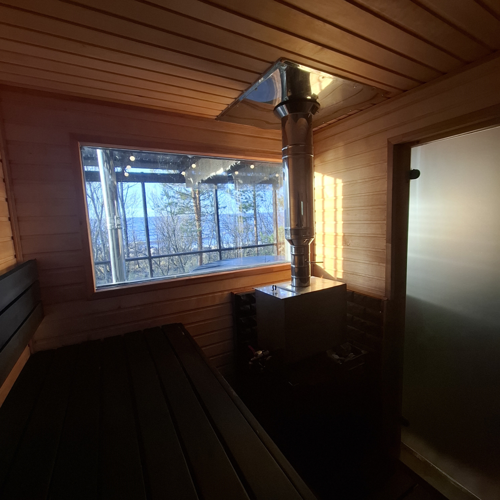 Спа-процедуры: паровая баня или баня с купелью с видом на Ладожское озеро.