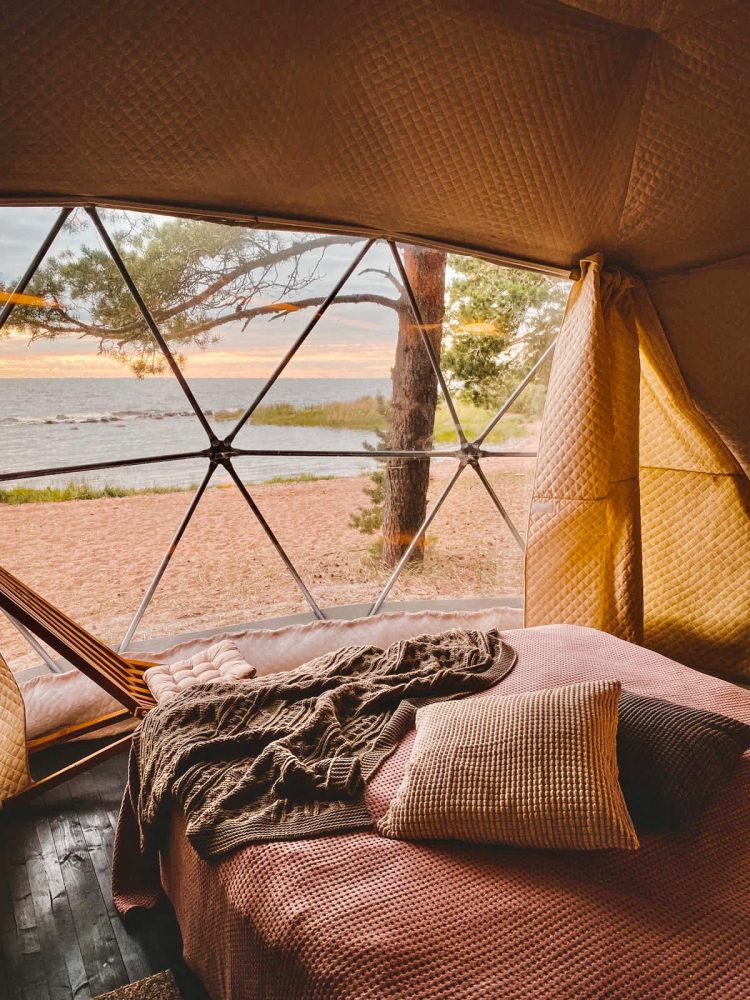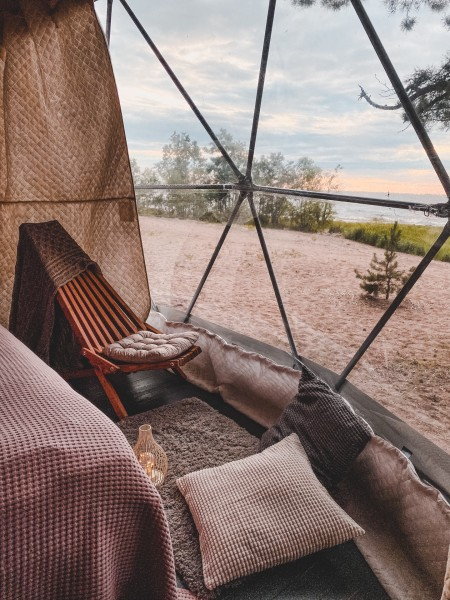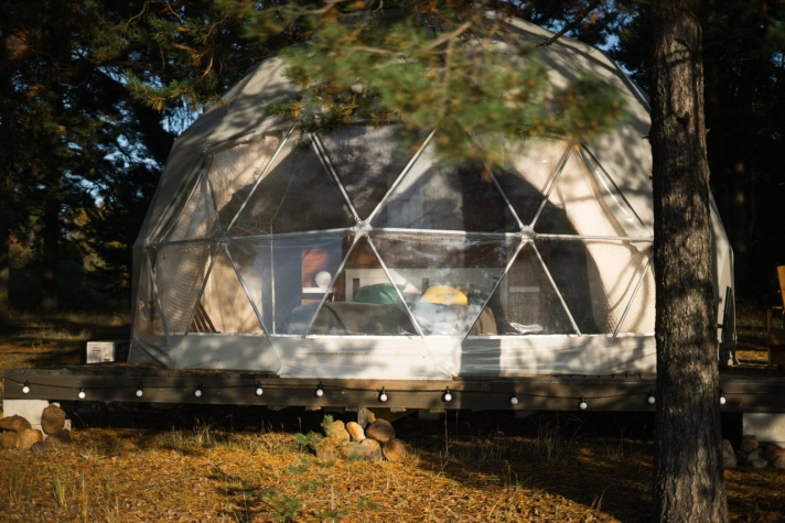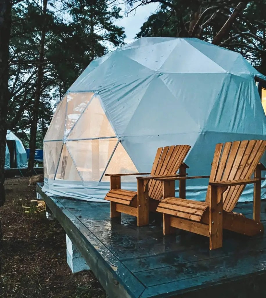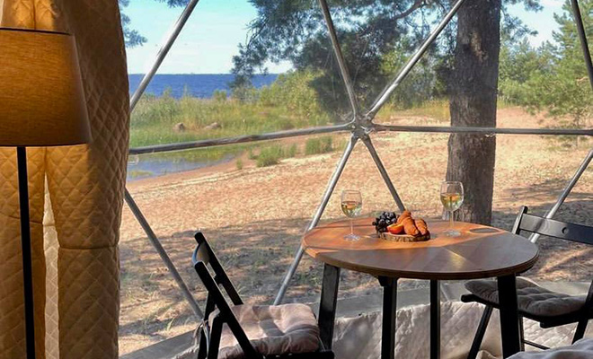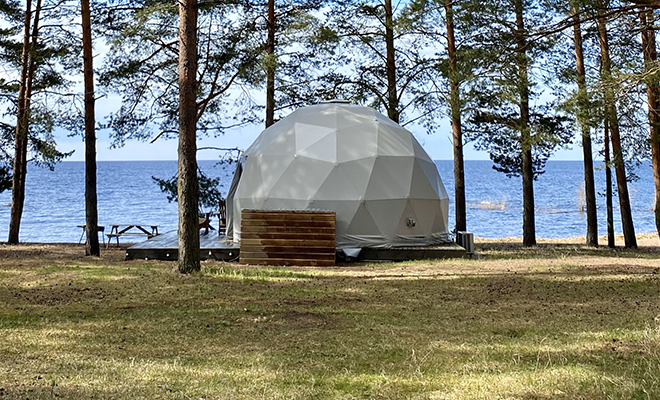 Все геокупола установлены на первой линии с видом на воду. Миниатюрная бухта защищает береговую линию от волн.