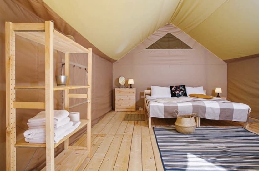 Это атмосферный отдых на природе со всеми удобствами и полноценным обслуживанием. Шатры оснащены всем необходимым для комфортного проживания.