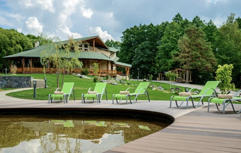 У нас Вы найдете уютный эко-комплекс куда легко попасть, удалившись от Москвы всего на какие-то 100 км. Корпуса с бассейном расположены на высоком берегу реки Таруса и в самом лучшем вкусе оснащены всем необходимым для проведения незабываемого отдыха в Подмосковье.