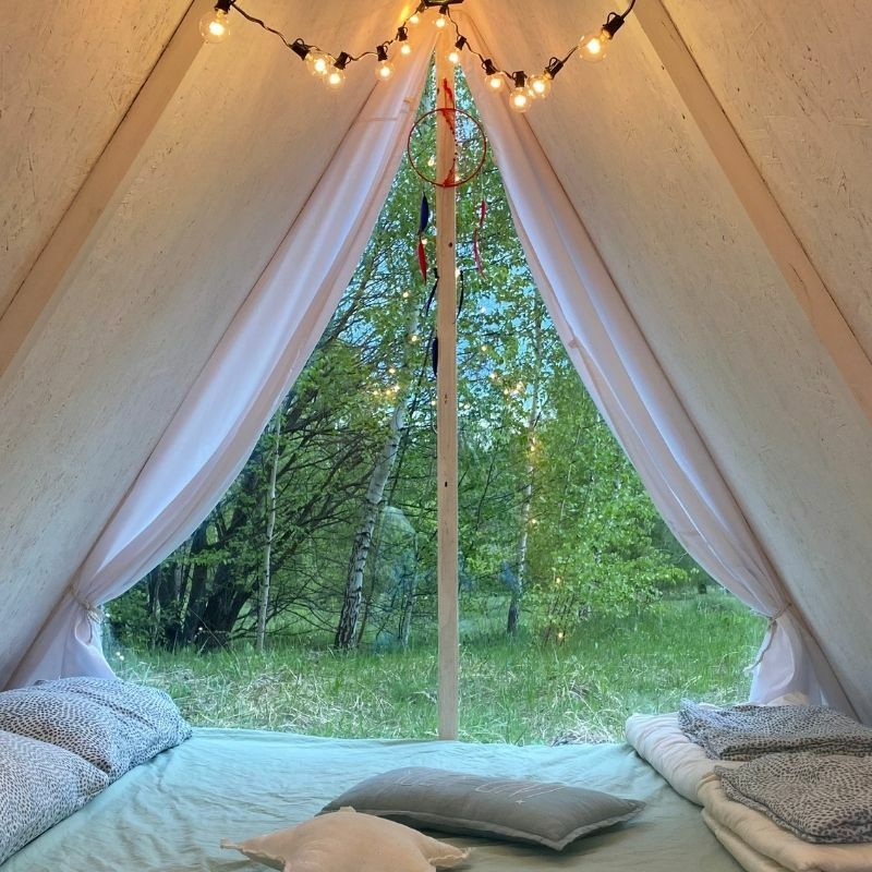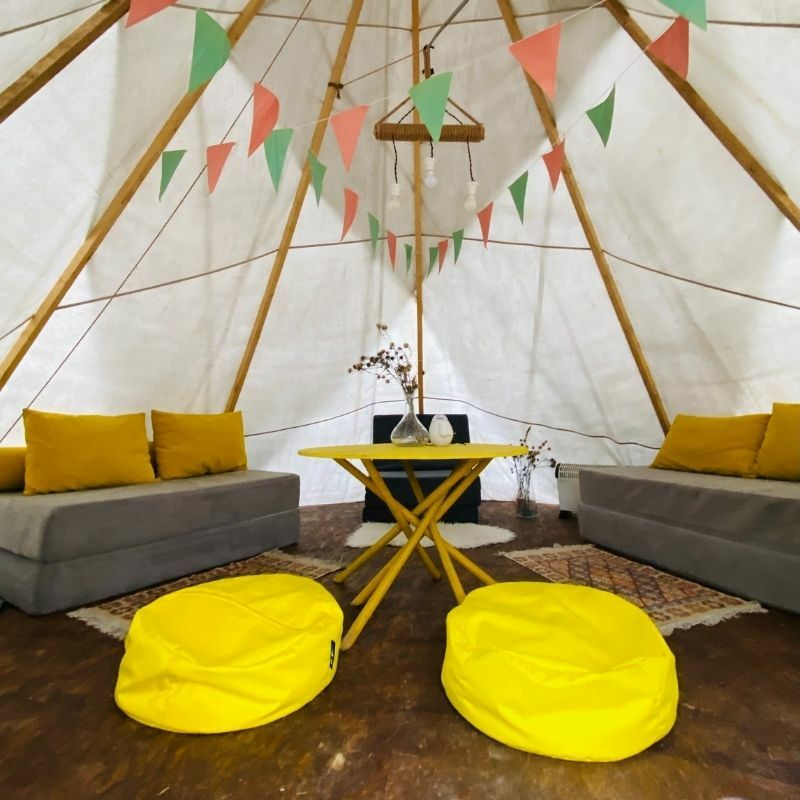 Вечером можно выбраться для отдыха у костра. Если хочется насладиться романтичным отдыхом, то чуть поодаль имеется шатер и палатка.