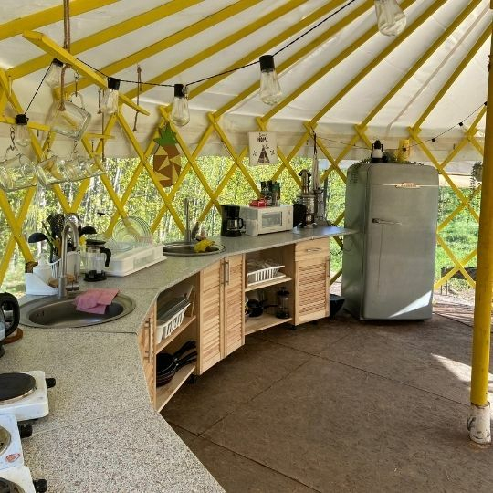 Так на территории есть три домика из дерева. Рассчитанные на три человека максимум. В них есть свои удобства: душ, туалет, кухня со стиральной машиной и даже библиотека с увлекательными книгами.