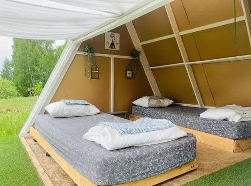 Сочетание отдыха на природе и привычного горожанам комфорта в необычных сооружениях. Находится это место в тридцати километрах от Казани.