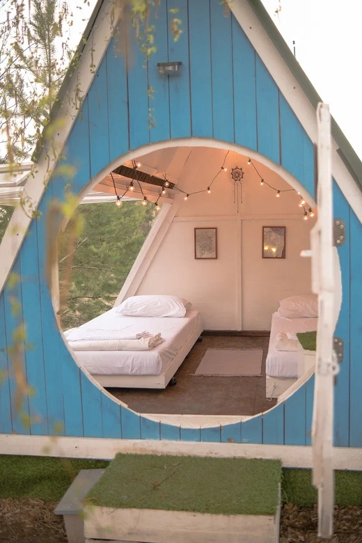 На территорию регулярно забегают зайцы и ежи. У туристов создается впечатление, что они находятся на настоящей даче, где любили отдыхать в детстве. За десять минут можно добраться до речки Шемелка. Туристы могут купаться, порыбачить. В аренду руководство дает сапборды, поэтому туристы обучаются и этому виду спорта.Питание не организуется. Нужно привезти все с собой, готовить можно на территории. На общей кухне отдыхающие найдут все необходимое оборудование, начиная от холодильника и микроволновой печи и заканчивая различными видами решеток для гриля и шашлыков.