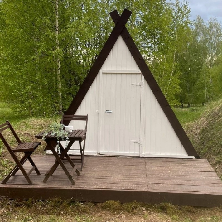 Летняя кухня, посадочная зона, мангальная зона, зоны отдыха с библиотекой в лесу, озеро, лес, родник и вся атмосфера с прелестями уже входят в стоимость аренды домиков.