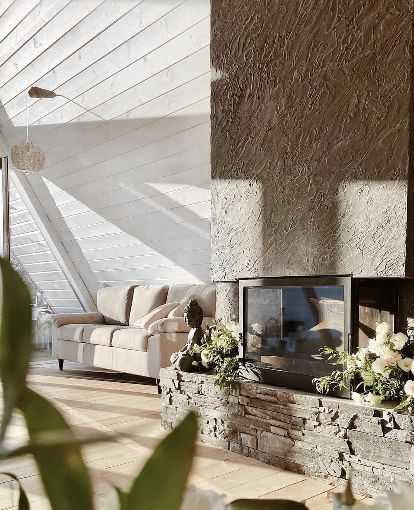 Гостиная: светлая комната с панорамными окнами, двумя мягкими диванами, журнальным столиком и свечами от бренда. В столовой вас ждет стол ручной работы и солнцезащитные кресла-стулья, созданные на заказ. Печь-камин согреет и создаст уютные вечера, проектор с новаторскими кино адаптируется к любой поверхности для просмотра фильмов как внутри, так и на улице.