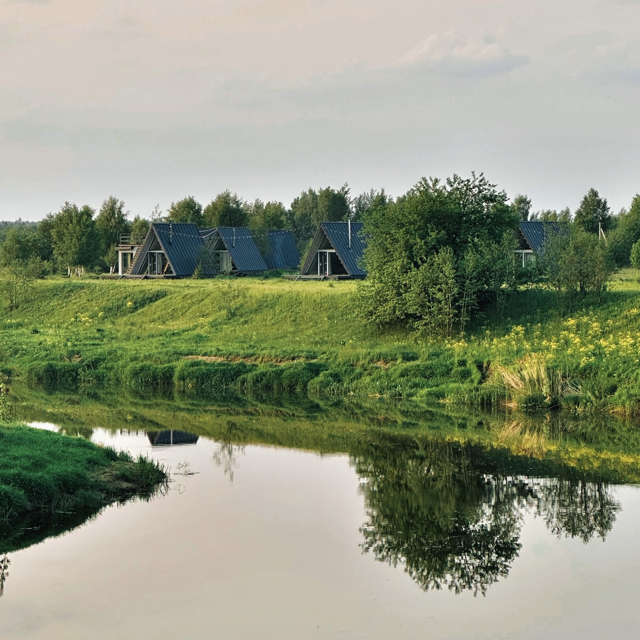 Общественные помещения: ресторан и зона отдыха с камином для игр, работы или просмотра кино. Особое место занимает баня с панорамными окнами и горячим чаном с видом на озеро и живописными закатами.